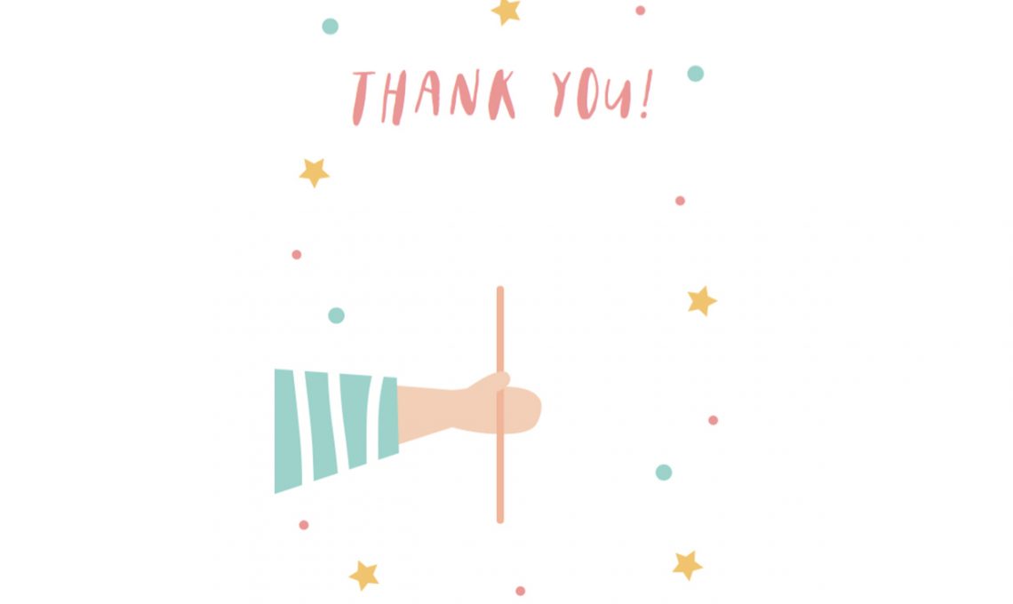 Ringrazia gli ospiti che hanno partecipato alla tua festa con un bigliettino illustrato.