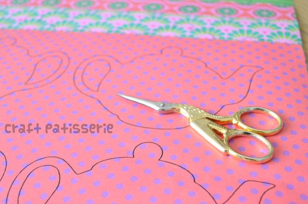 • Piega a metà il foglio in modo da far combaciare due teiere e incollale