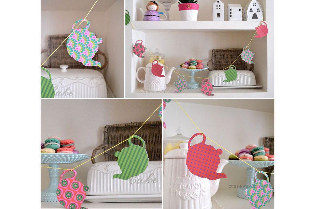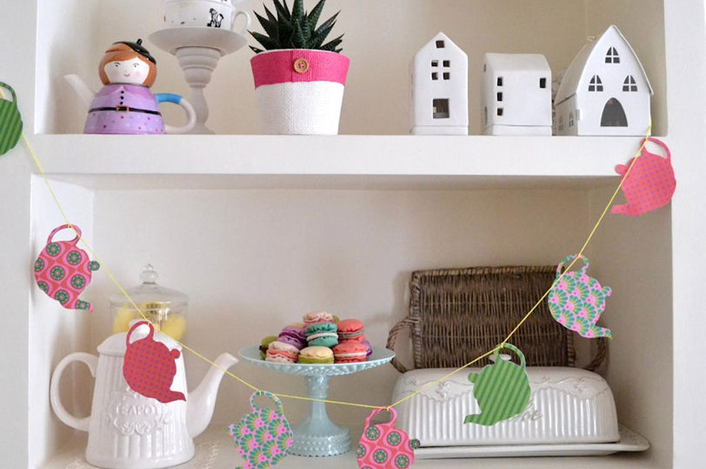Voilà! La ghirlanda di teiere è pronta per la festa!