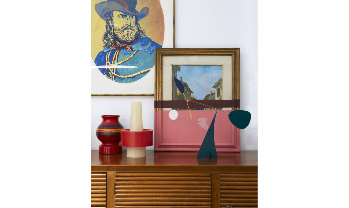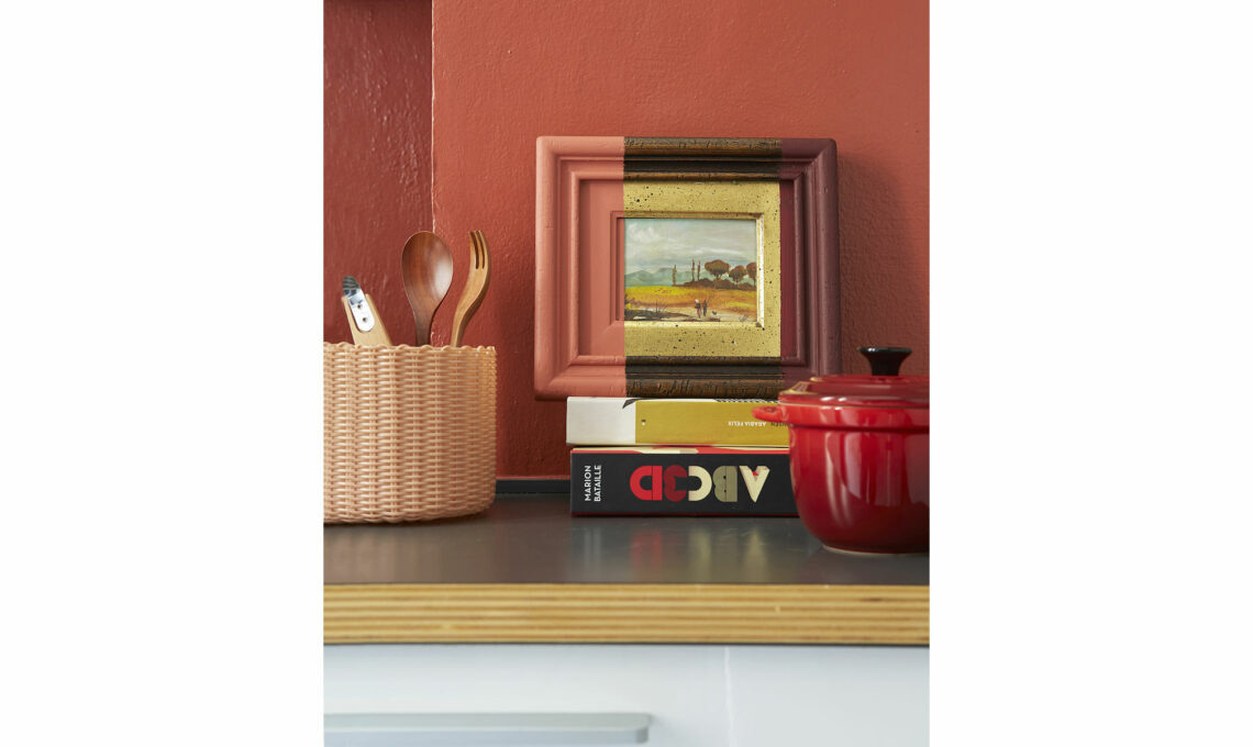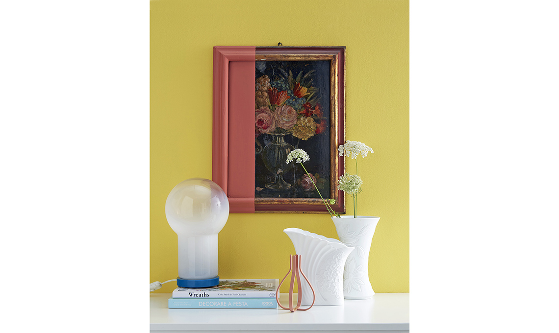 Strisce di colore e interventi grafici compaiono su vecchi quadri ripescati in soffitta o presi a poco prezzo nei mercatini del vintage. L’ispirazione viene dal ‘dipped painting’, l’arte di immergere i dipinti in bagni di vernice.