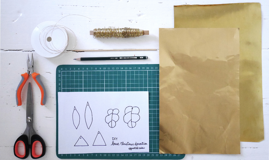 Ritaglia i disegni che utilizzerai come sagome da ricalcare sulla lamina in ottone (utilizzando una matita morbida).