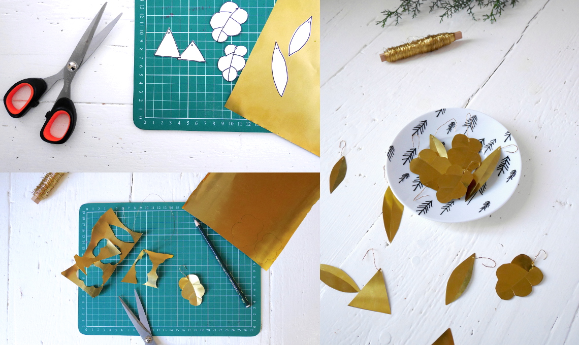 Ritaglia le sagome in ottone e realizza le venature delle foglie o altre incisioni a piacimento con uno stecchino in legno o la punta arrotondata di un chiodo in base allo spessore della lamina. Ti consiglio di provare su un campione l’incisione in modo da calibrare la profondità più idonea.