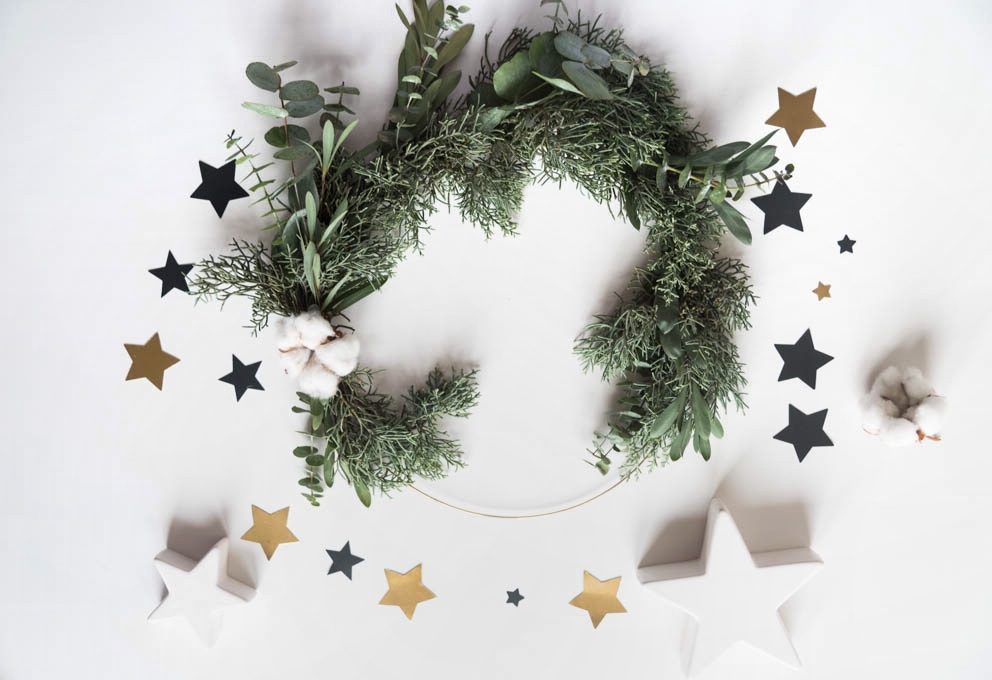 Natale: Ghirlanda fai-da-te di eucalipto e pino