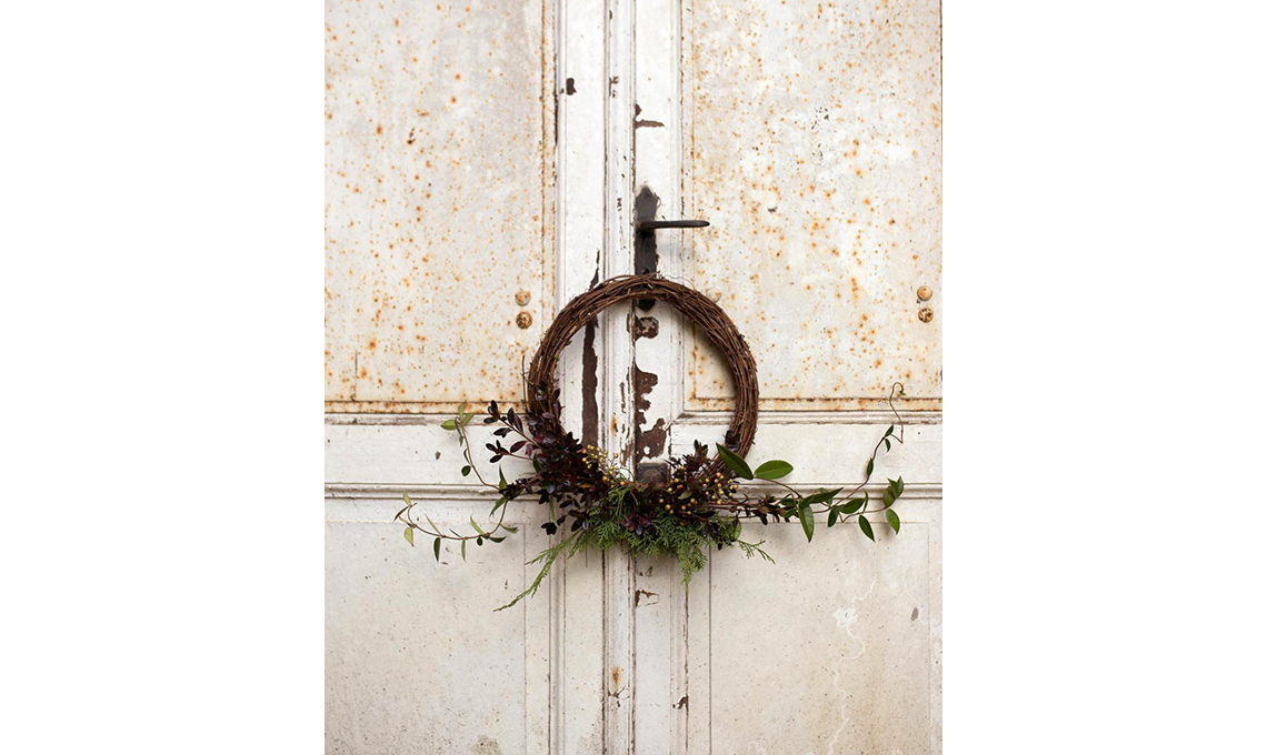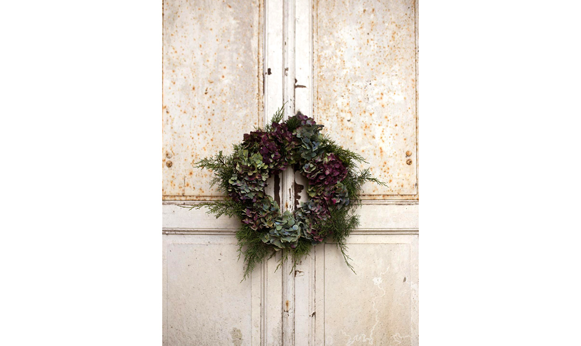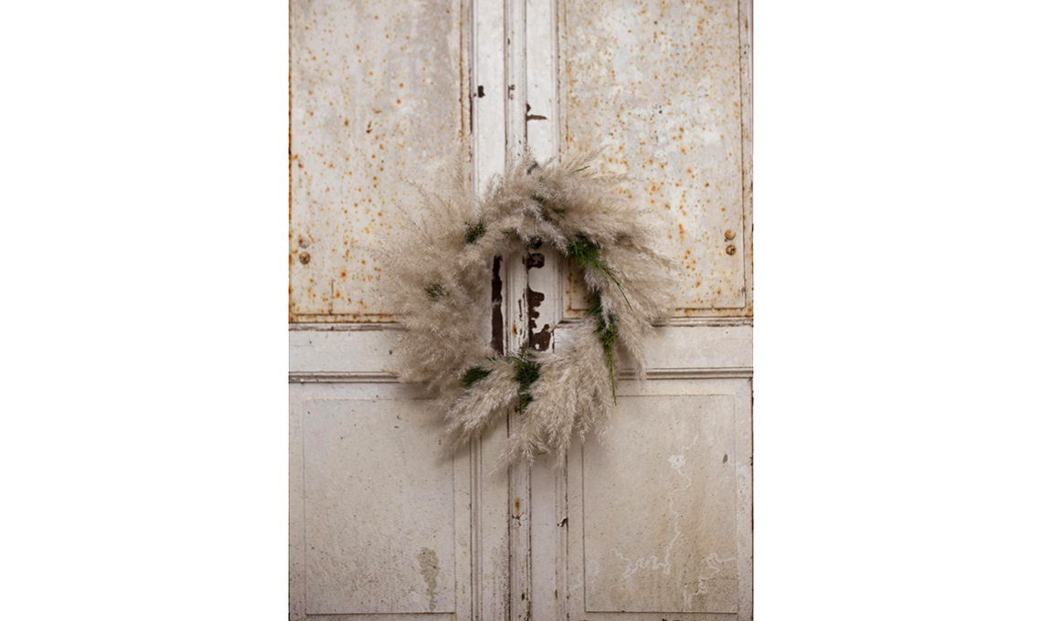 Le ghirlande di Natale di Eugenia hanno tutte come base il ginepro, mixato a: ortensie; gelsomino e bacche di bambù sacro; pampa; erbe aromatiche: lavanda, salvia e timo. Dove trovi l’occorrente? Nei garden center e nei centri del fai-da-te, come Leroy Merlin.