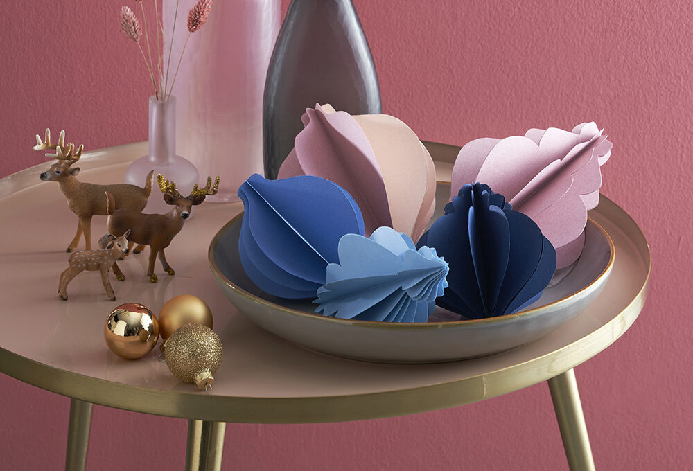 Poltroncina Czech in faggio curvato laccato wine red [Gebrüder Thonet], scatola in legno di acacia [Zara Home]. Palline decorative satinate e in velluto [Casa].