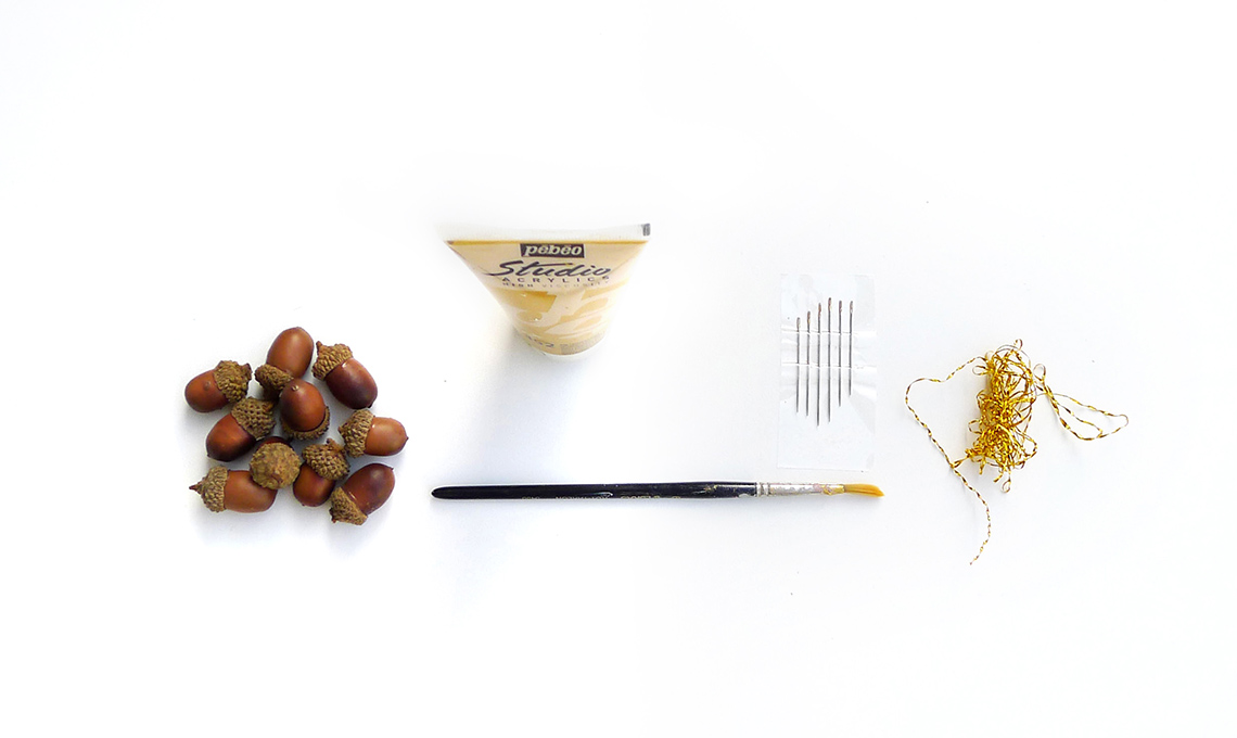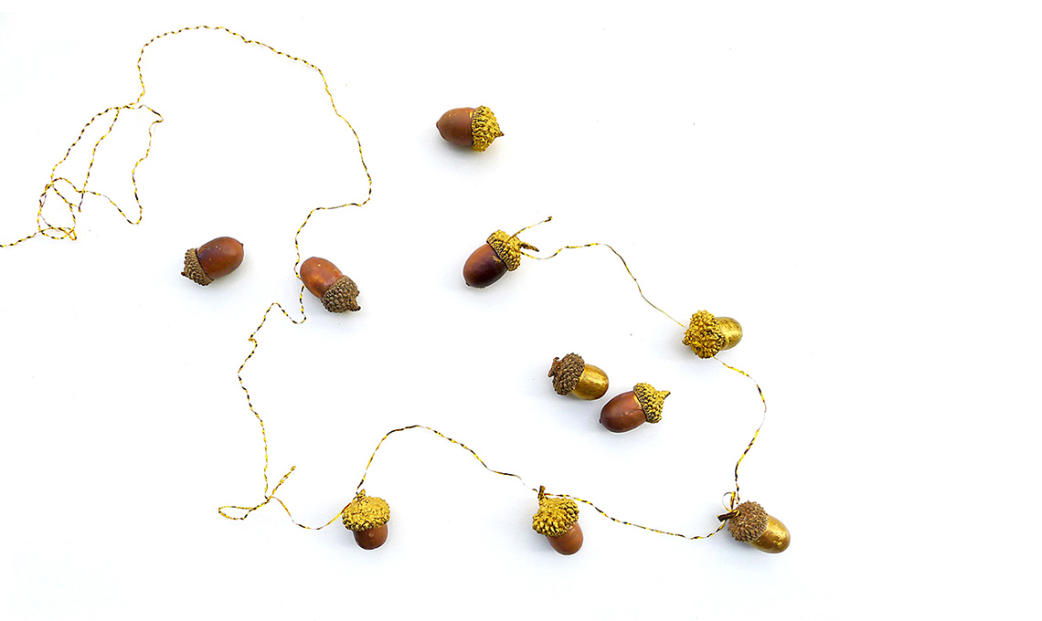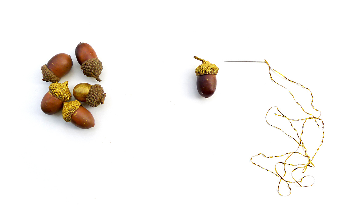 - Dipingi le ghiande (completamente oppure solo una metà) con il color oro o in un’altra tonalità che si abbina ai tuoi decori.
