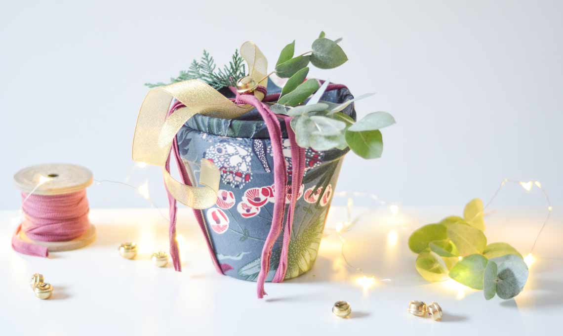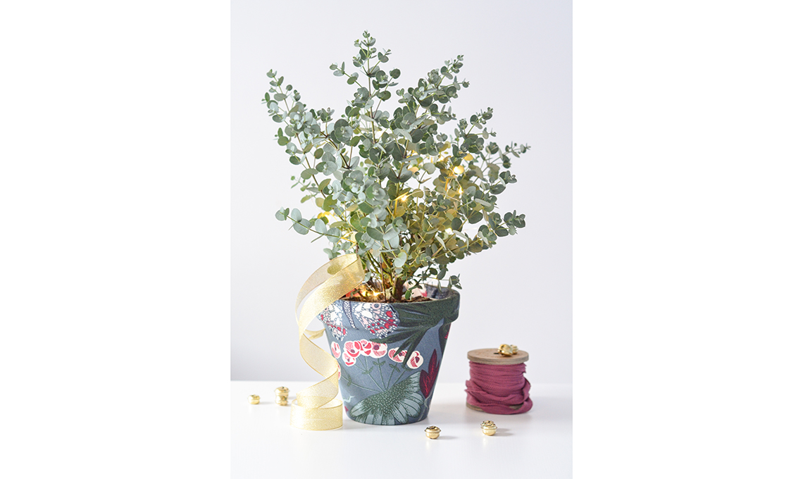 - Metti il regalo all’interno del vaso, appoggia il sottovaso come se fosse il coperchio di una scatola e decora con nastri, campanellini e qualche rametto fresco.