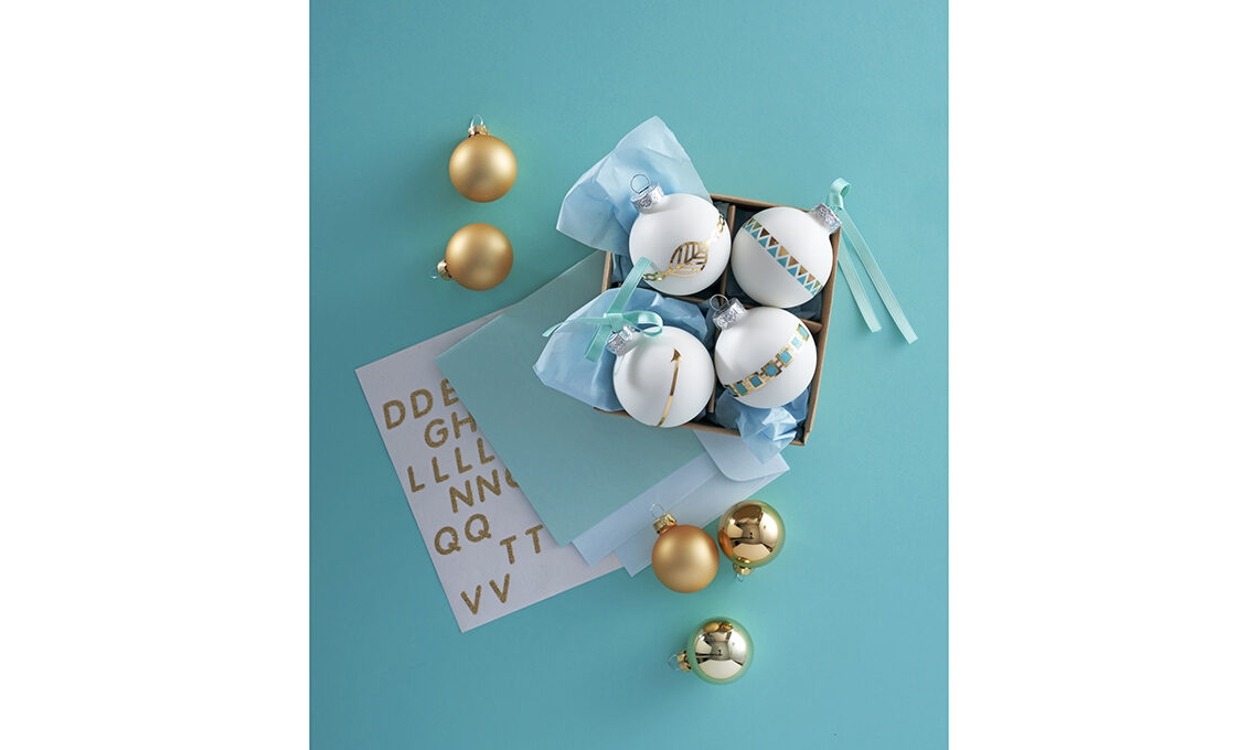 Sulle palline colorate, realizza pennellate in bianco o oro. Oppure usa la gommina sulle matite come tampone da stencil per creare sulle palline micro-pois dipinti e altre decorazioni.
