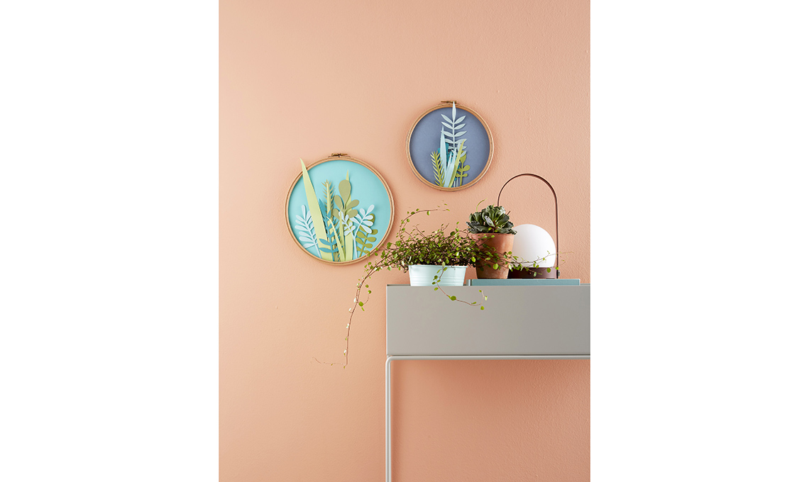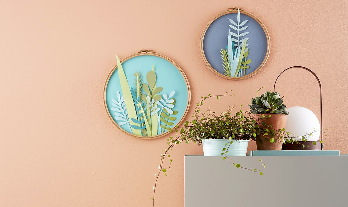 - Modellale con le mani. Metti una punta di colla e infila la base delle foglie sotto il cerchio interno del telaio. Per evitare che si pieghino fissale in alcuni punti con la colla.