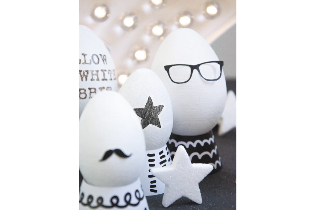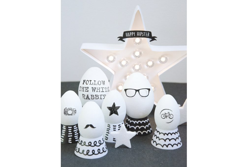 Non le solite uova: tanta ironia per le decorazioni in bianco e nero in stile Hipster