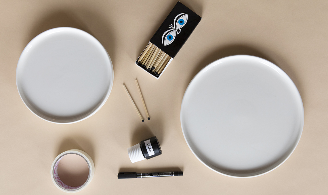 N.B.: per il piatto con il pattern irregolare si sono utilizzati un fiammifero e uno stuzzicadenti, per creare puntini più leggeri.