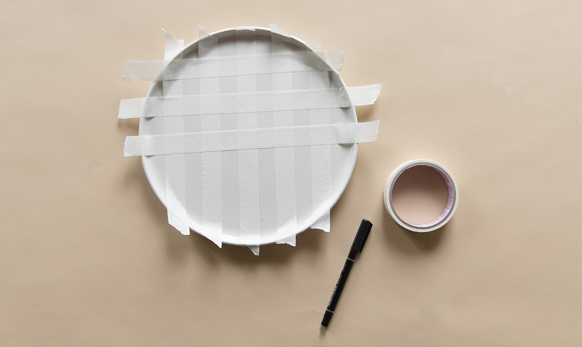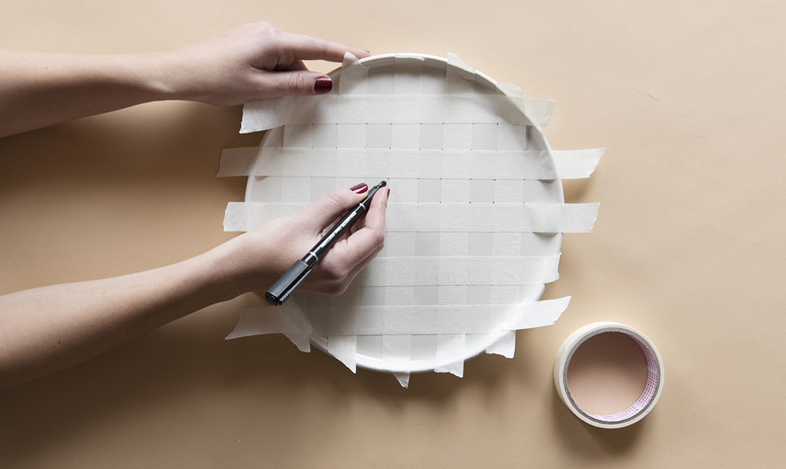 Crea un motivo regolare a griglia, usando il nastro adesivo.