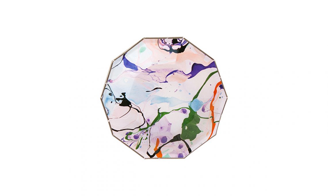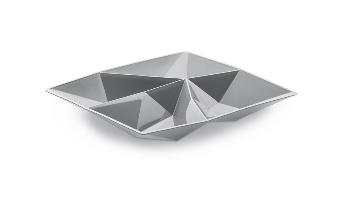 Sovrapponili uno sull’altro per ottenere geometrie sempre nuove: vassoi Kaleidos in acciaio verniciato [Made in Design, da €12 per il modello da cm 19x11].