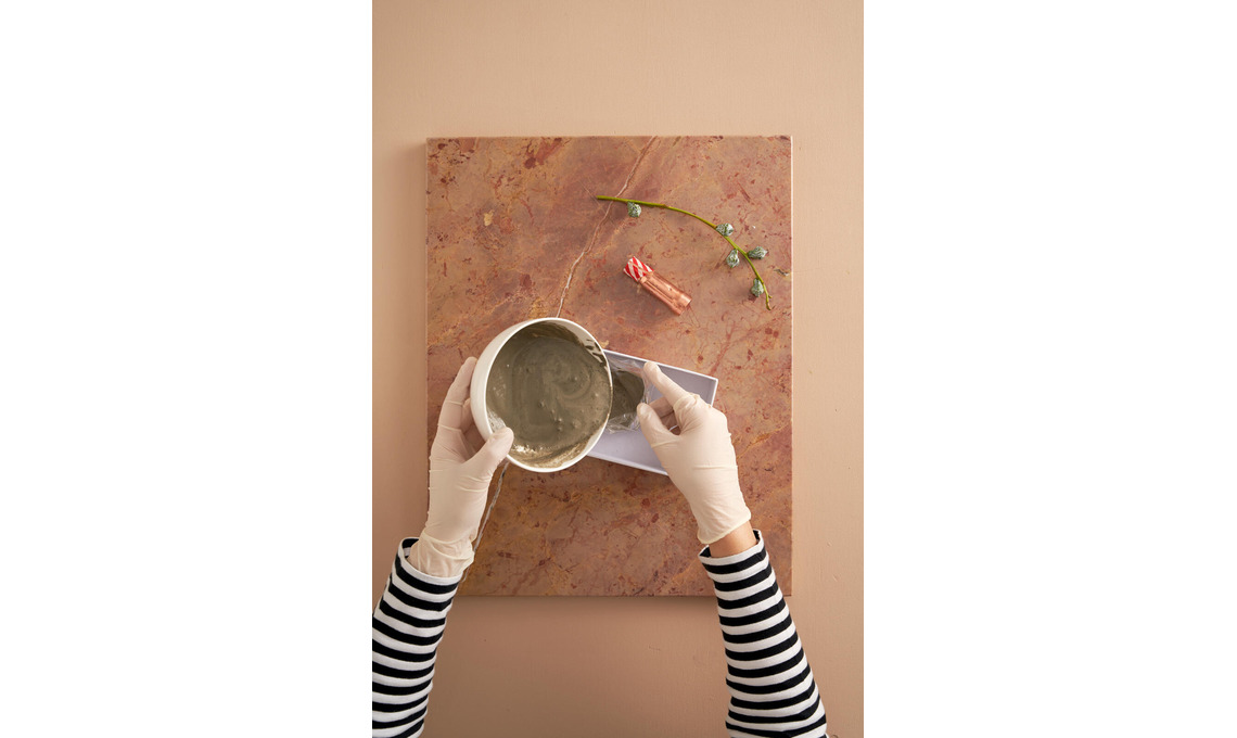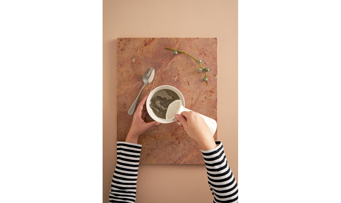 1 In una ciotola unisci 2 parti di cemento e 1 parte di acqua.
