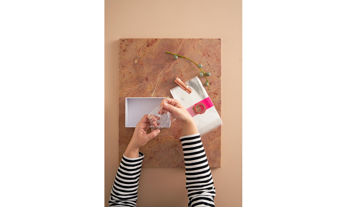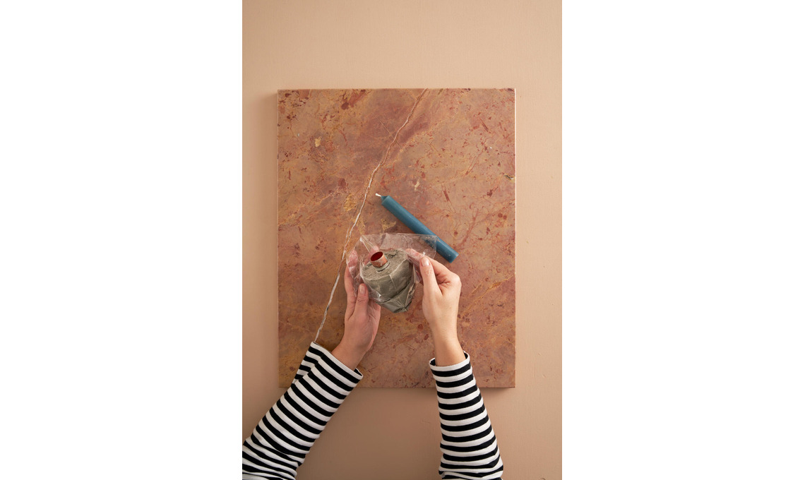 6 Lascia solidificare per almeno 24 ore, quindi estrai il portacandele rompendo il sacchettino.