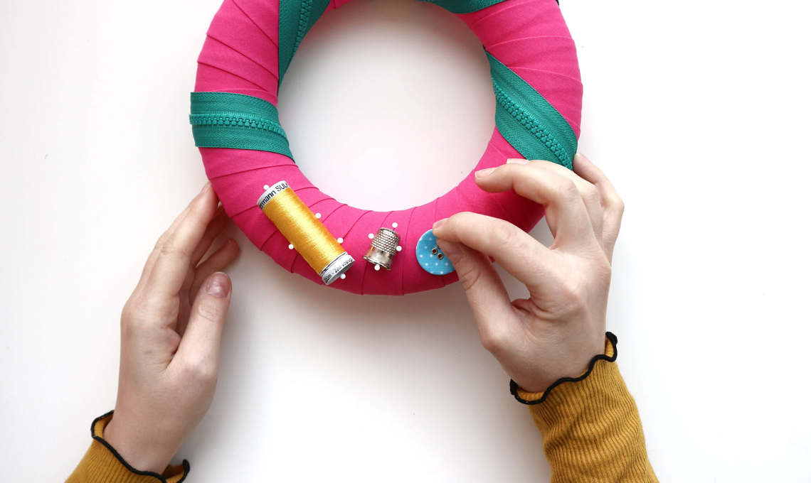Crea una ghirlanda che parli della tua passione, come il cucito per esempio. Se ti va, puoi anche lasciarla esposta tutto l’anno! L'idea in più? Replica il progetto per i tuoi cari, scegliendo i colori e gli accessori in base alle loro passioni. Sarà un regalo di Natale perfetto!