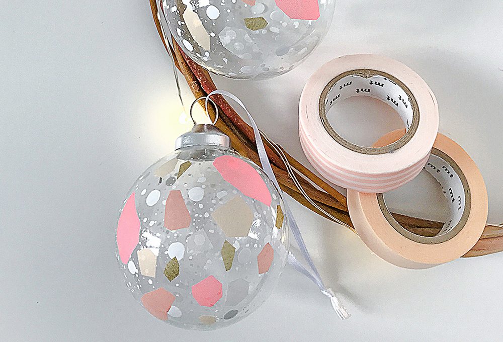 Decorazioni in ottone appese sul ramo di [Ferm Living], bicchieri in