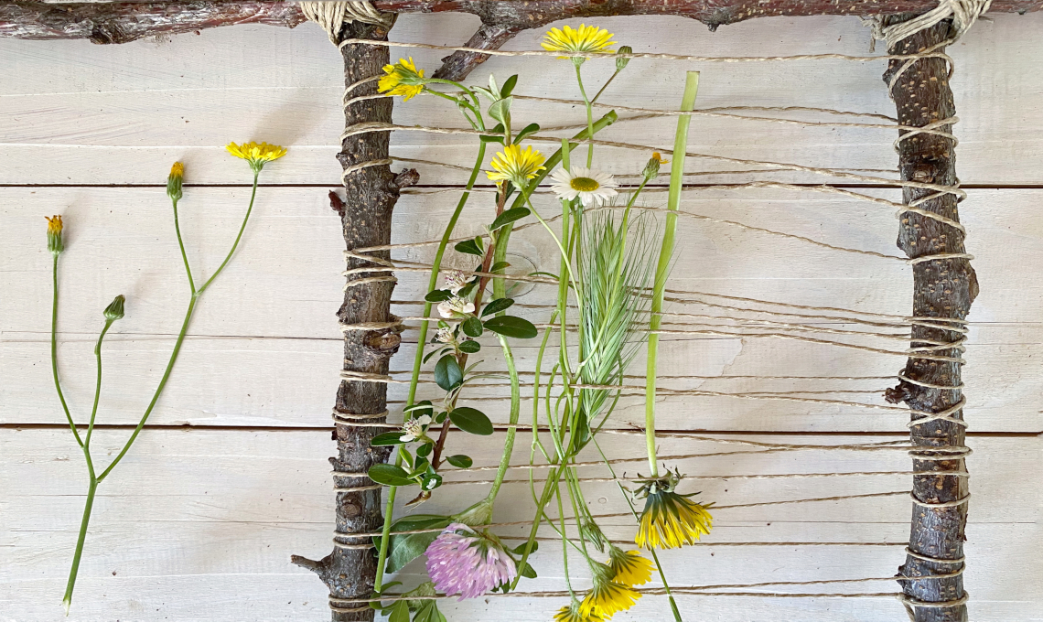 Realizza il tuo 'Nature Weaving', ovvero la tessitura naturale: puoi usare gli elementi che preferisci come fiori, rametti, foglie secche, piume e tutto quello che ti viene in mente. Divertiti a cambiare decorazione e tessitura a seconda del tuo gusto, dei tuoi ritrovamenti ma anche a seconda della stagione.
