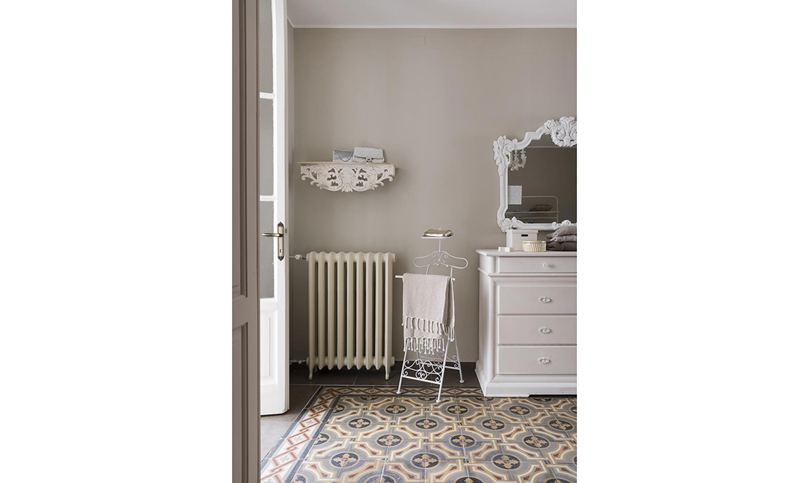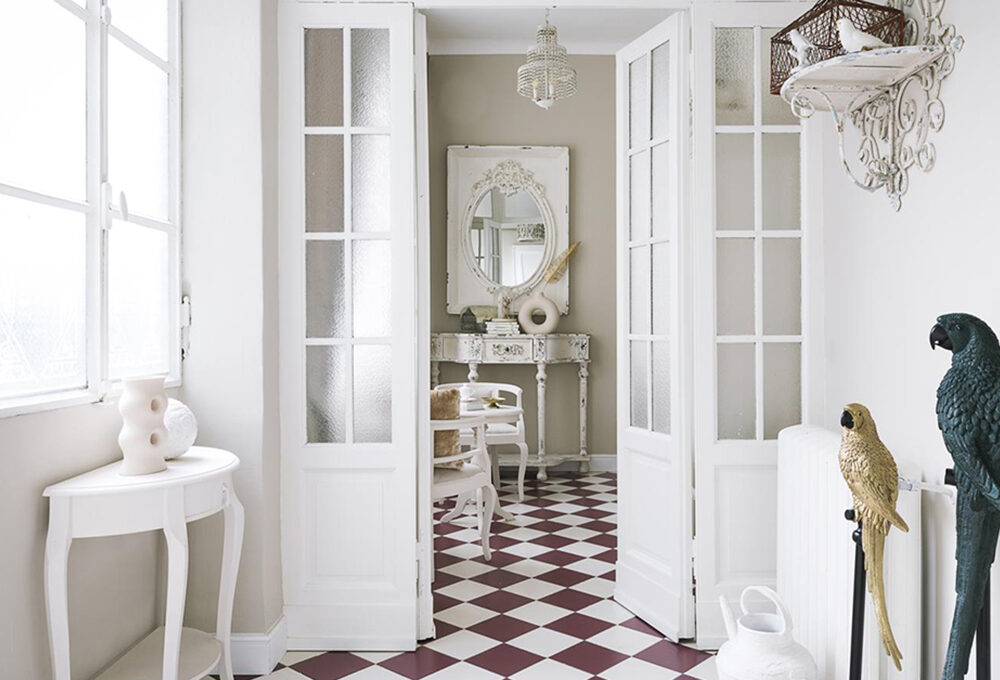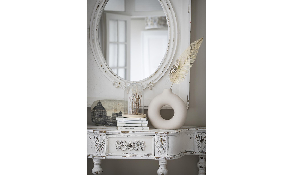 - Dai due mani di vernice bianco latte. Lascia asciugare e carteggia le parti dove avevi strofinato la candela per ricreare l’effetto usurato.
