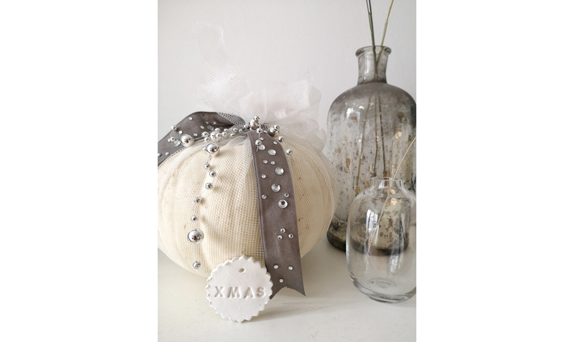 - Per chi invece ha poco tempo, meno manualità o semplicemente ama uno stile più essenziale, basterà avvolgere la zucca in un pò di tulle bianco e poi annodarci un bel fiocco!
