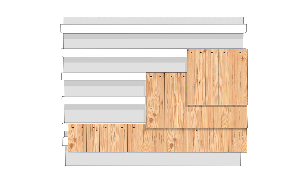 Fondamentale è comporre con attenzione la griglia di fissaggio di listelli di legno, a cui vanno inchiodate le scandole. Per un buon risultato, fissale dal basso verso l’alto, completando la fila in orizzontale prima di partire a sovrapporre la seconda fila.