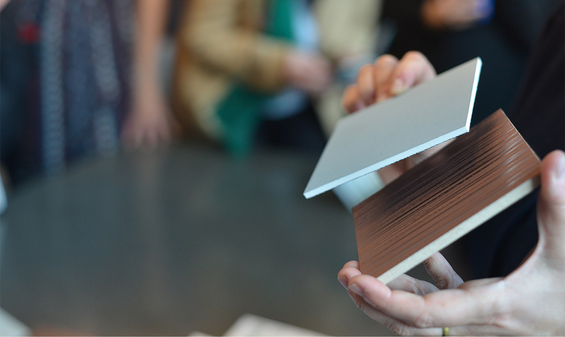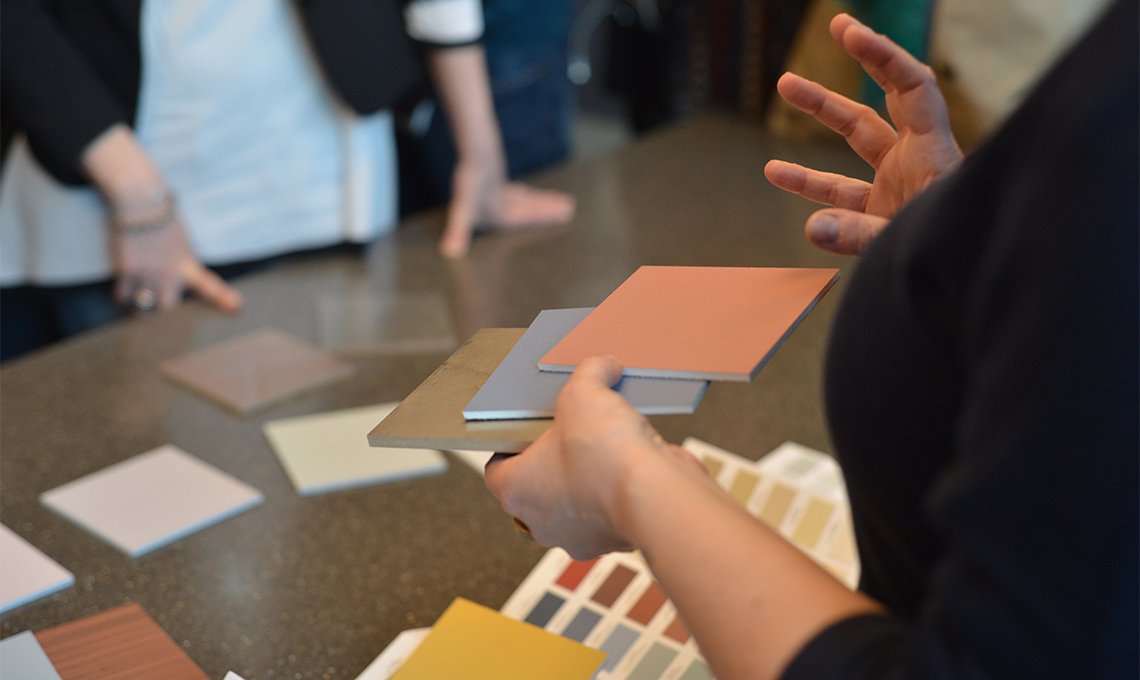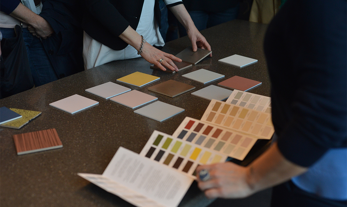 I campioni con le finiture dei prodotti Novacolor sono diventati tessere di un gioco per imparare gli abbinamenti, organizzato durante il workshop nel CasaFacile DesignLab.