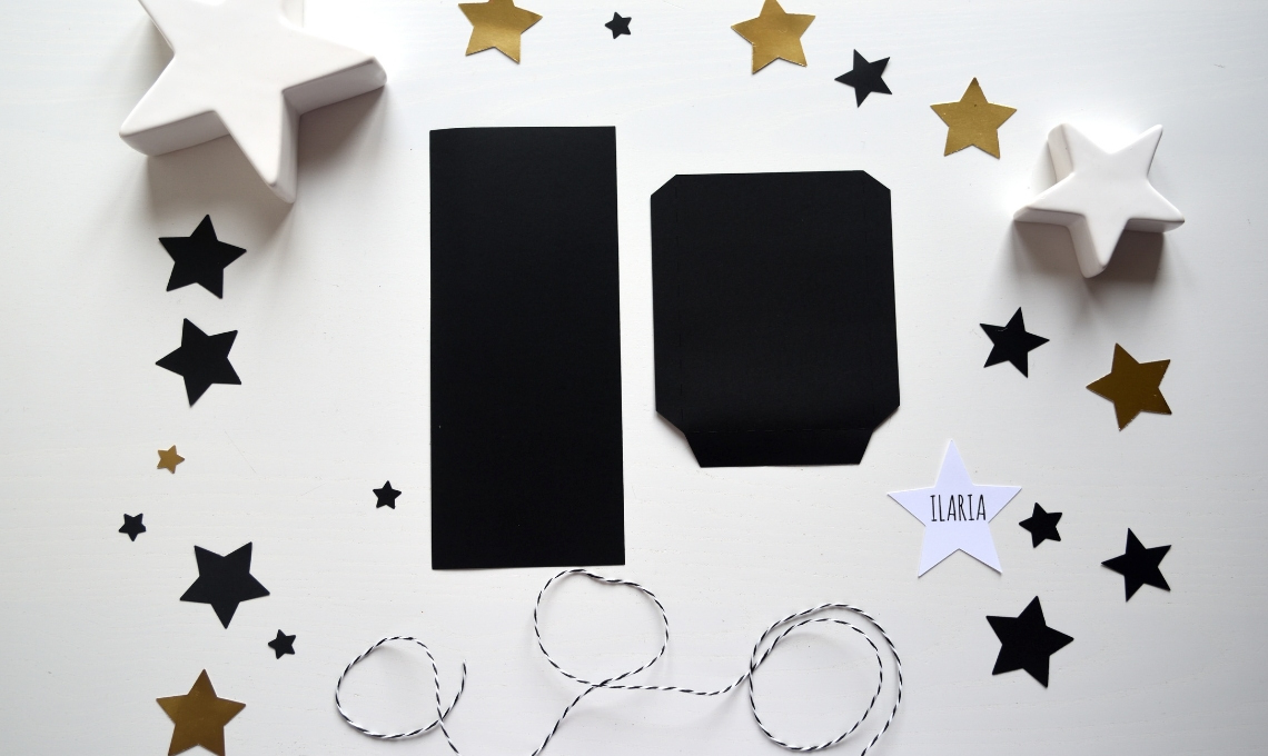 ritaglia le stelle con i nomi, avvolgi il backer’s twine (o il nastrino) intorno alla bustina;
