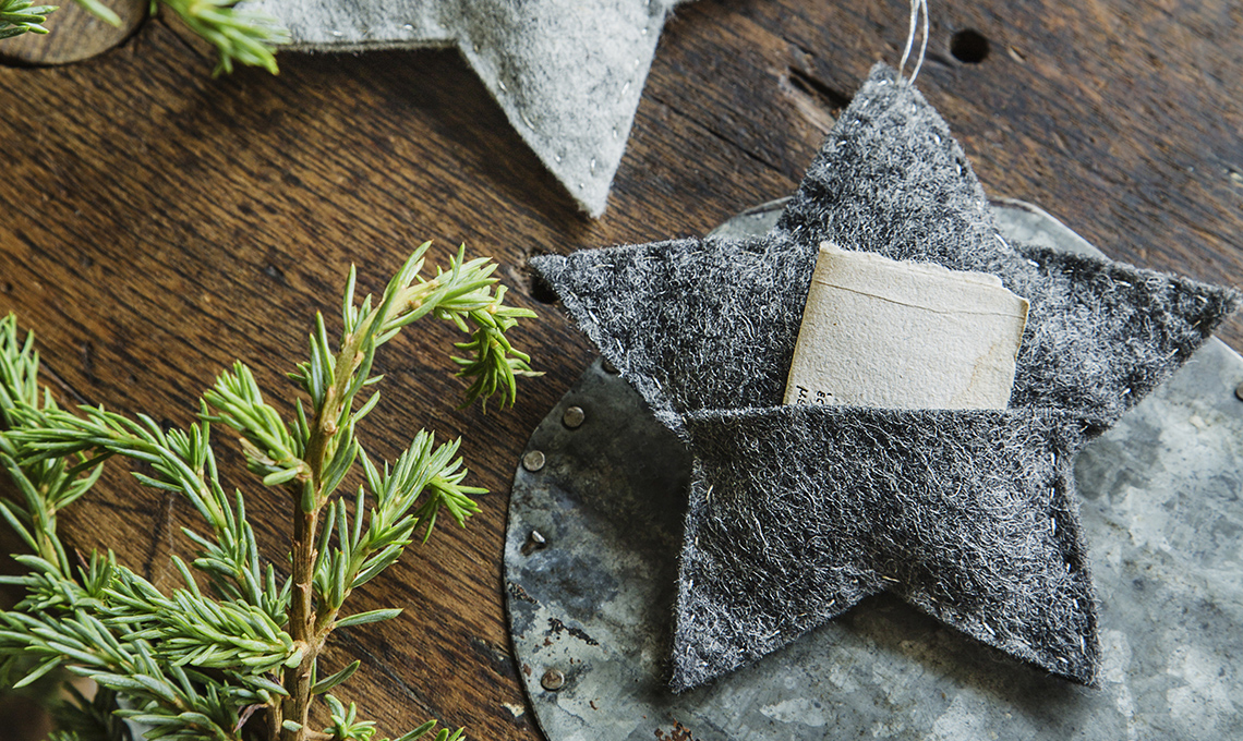 Stelle imbottite con taschine porta messaggi, realizzale fai-da-te da appendere all'albero di Natale, per lasciare messaggi nel tuo calendario dell'Avvento o da aggiungere ai pacchetti per auguri speciali.