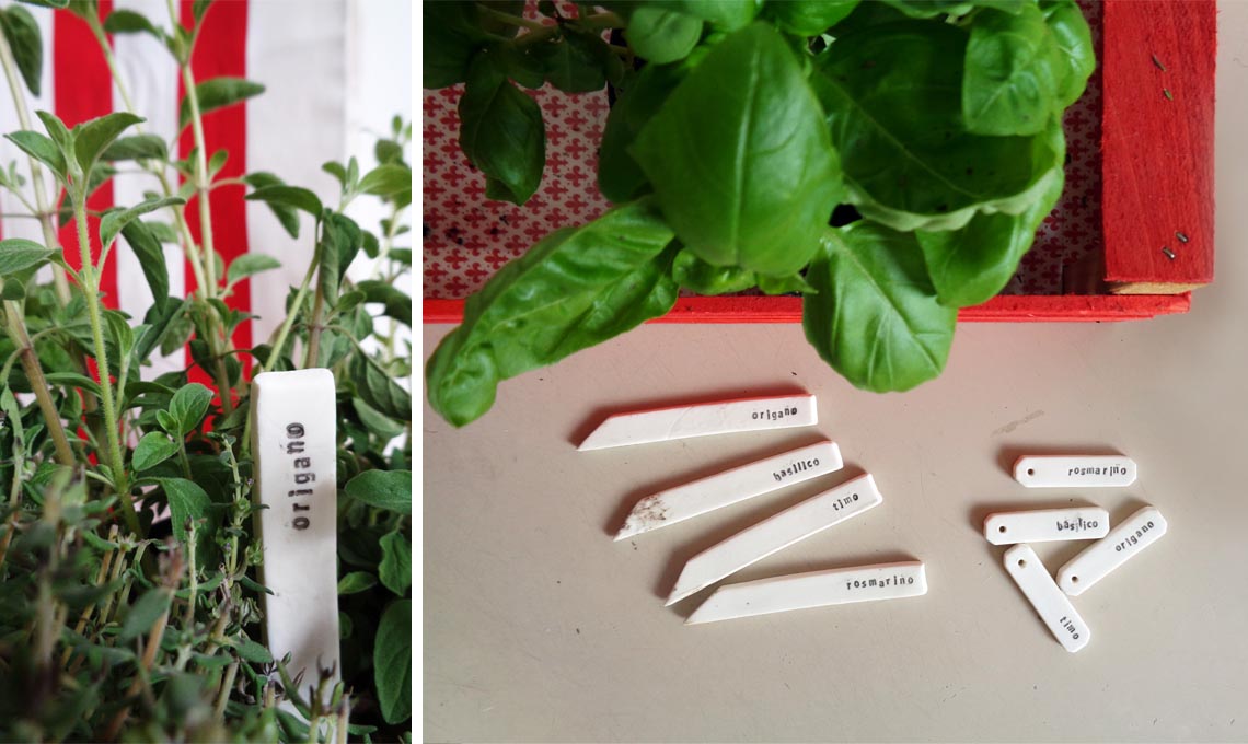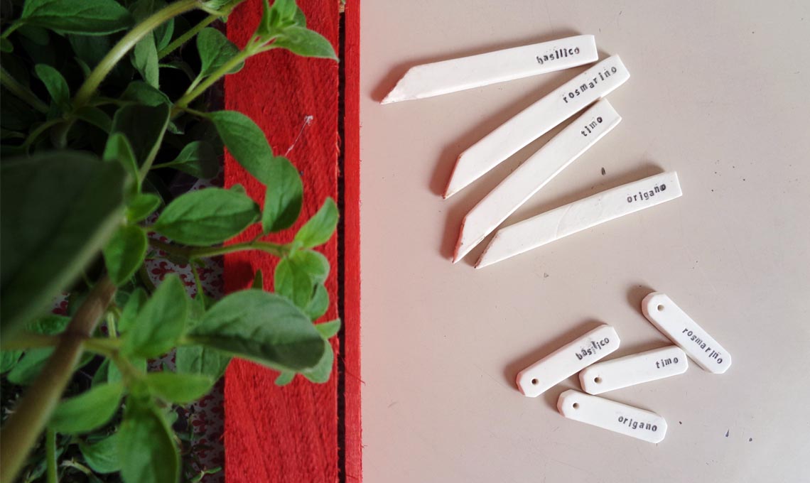 Se non vuoi mettere le targhette nella terra, puoi realizzarne di più piccole, da 1,5 x 6 cm, da appendere alle painte. Pratica un foro con un legnetto da spiedino e scrivi il nome della pianta come indicato prima. Passa uno spago nel foro e appendi la targhetta a un rametto, oppure lega lo spago attorno al vaso.