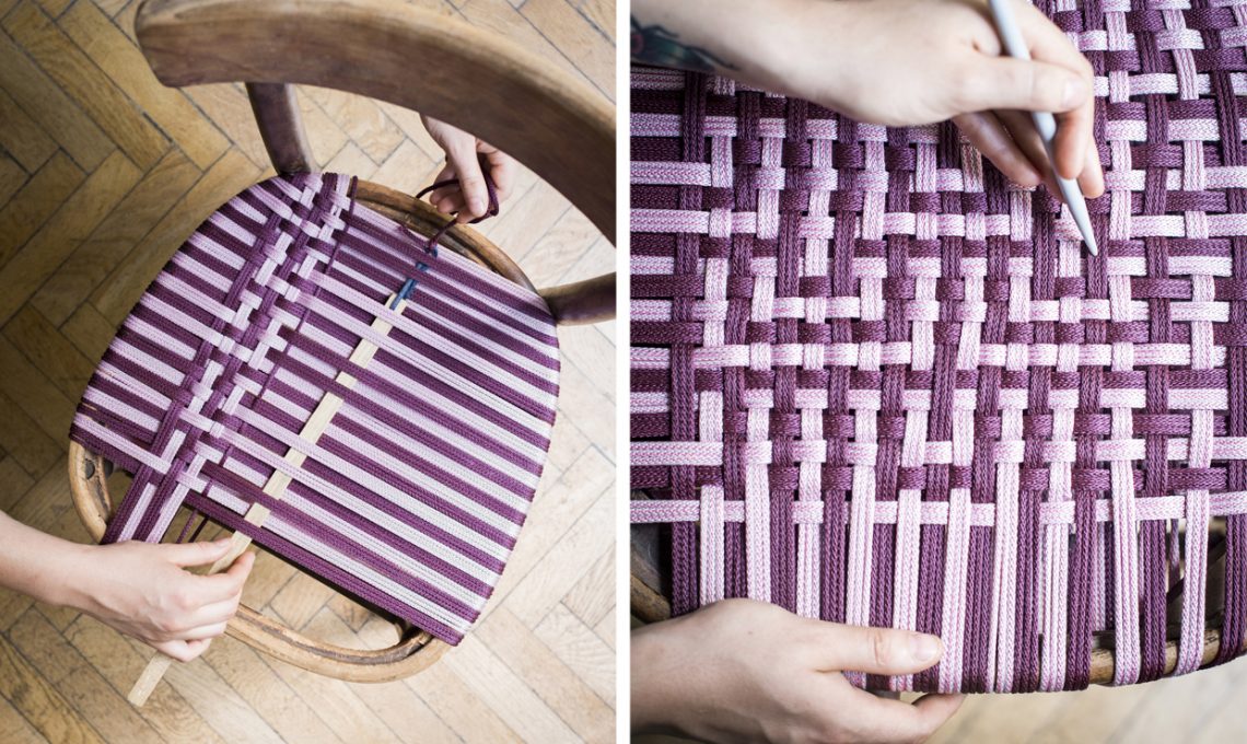 Ispirati ai lavori di Clara di Nodo, laboratorio creativo che rivisita la classica impagliatura con filati in polipropilene, ultra resistenti. Tra le sue mani, vecchie poltrone e tavolini, testiere di letto e séparé diventano moderni pezzi di design. Clara applica i suoi colorati fili direttamente sulla struttura e poi procede come se lavorasse al telaio. Infine, appone a fuoco il marchio Nodo, che rende riconoscibili i frutti della sua craft-art.