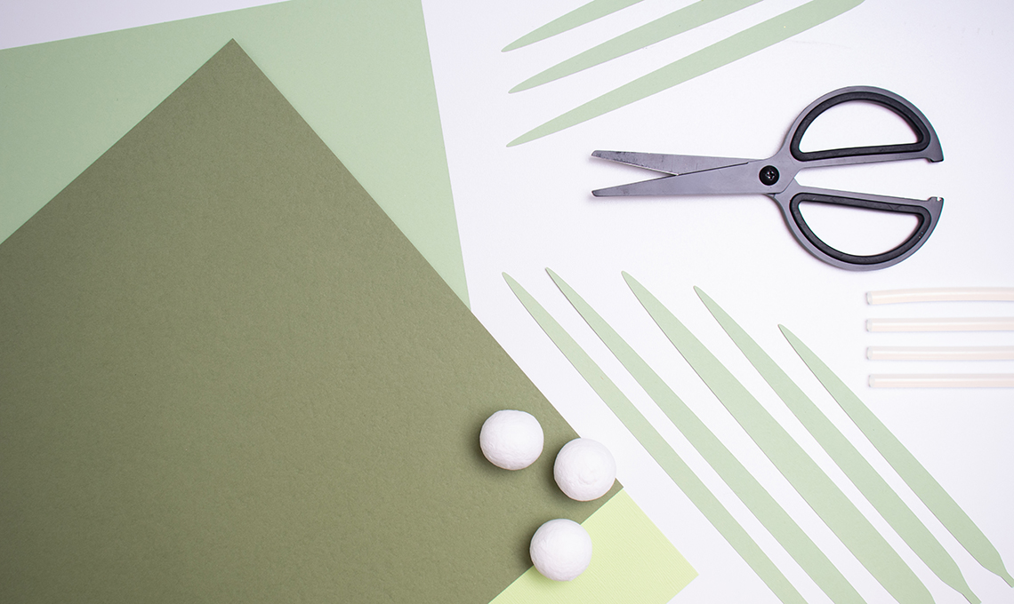 - Le foglie dovranno avere una doppia curvatura a “S”: parti da metà e fai scorrere il dorso delle forbici verso la punta della foglia, poi ripeti l’operazione verso la parte terminale della foglia, ma passando le forbici sul lato opposto del cartoncino.