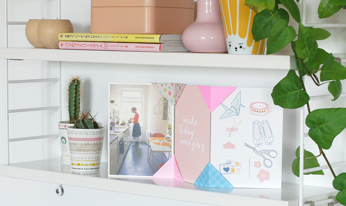 Qui ho realizzato degli origami con cui tenere in piedi le fotografie, perfetti per decorare un angolo di casa con i ricordi di una vacanza.