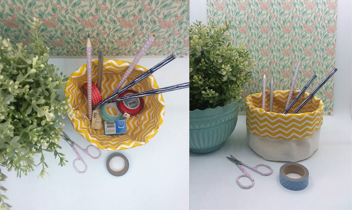 Finito il “giro”, cucite anche i due lati corti ottenendo così un cestino. Con gli stessi passaggi realizzate un identico cestino di tessuto a tinta unita e rigiratelo al dritto. Infilatelo poi all’interno del cestino di stoffa fantasia rimasto al rovescio. Allineate i bordi superiori e cuciteli insieme, lasciando un’apertura di circa cm 6. Da questa risvoltate e sistemate il cestino colorato, che farà da fodera, all’interno dell’altro; stirate il tutto e chiudete con punti nascosti la cucitura lasciata aperta.