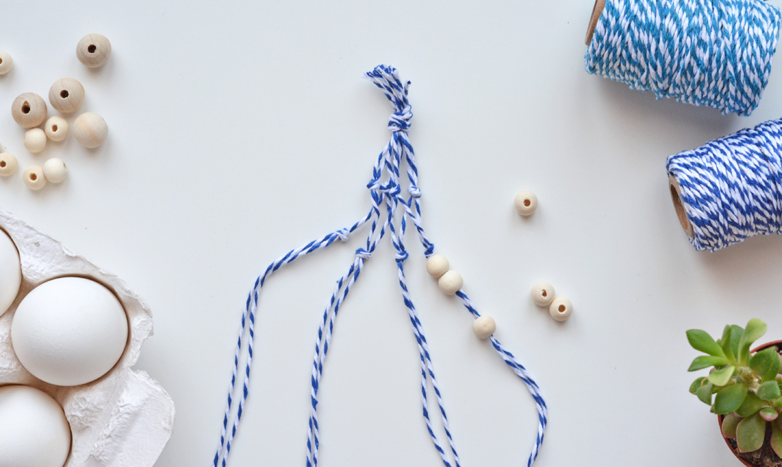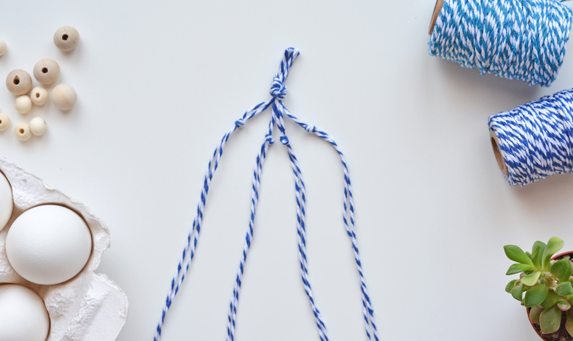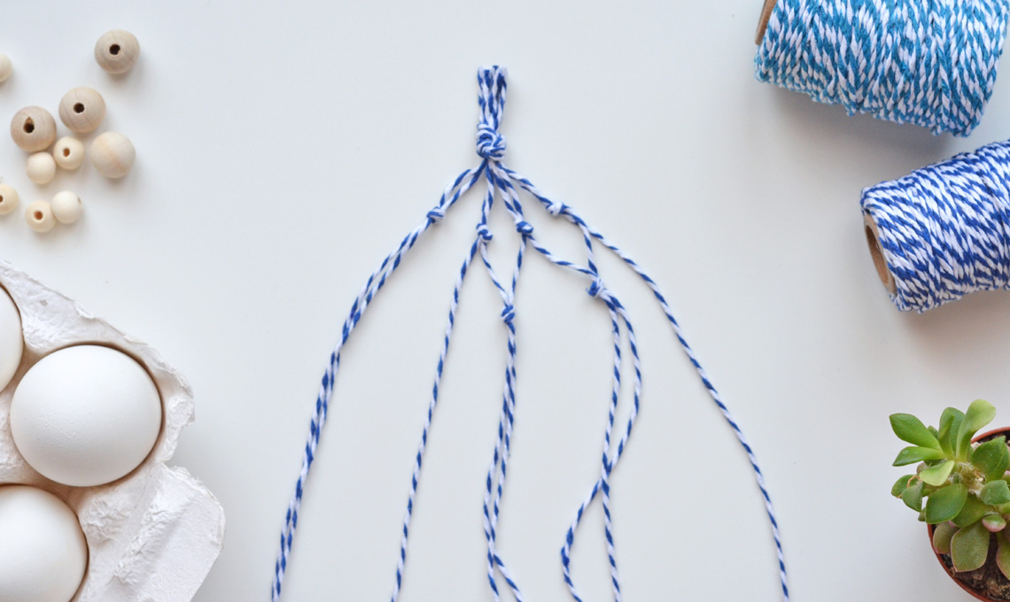 5. Sistema l’uovo all’interno del porta vaso di spago e annoda le estremità libere all’altezza che preferisci.
