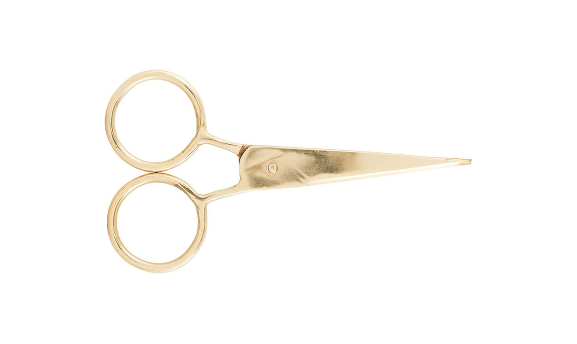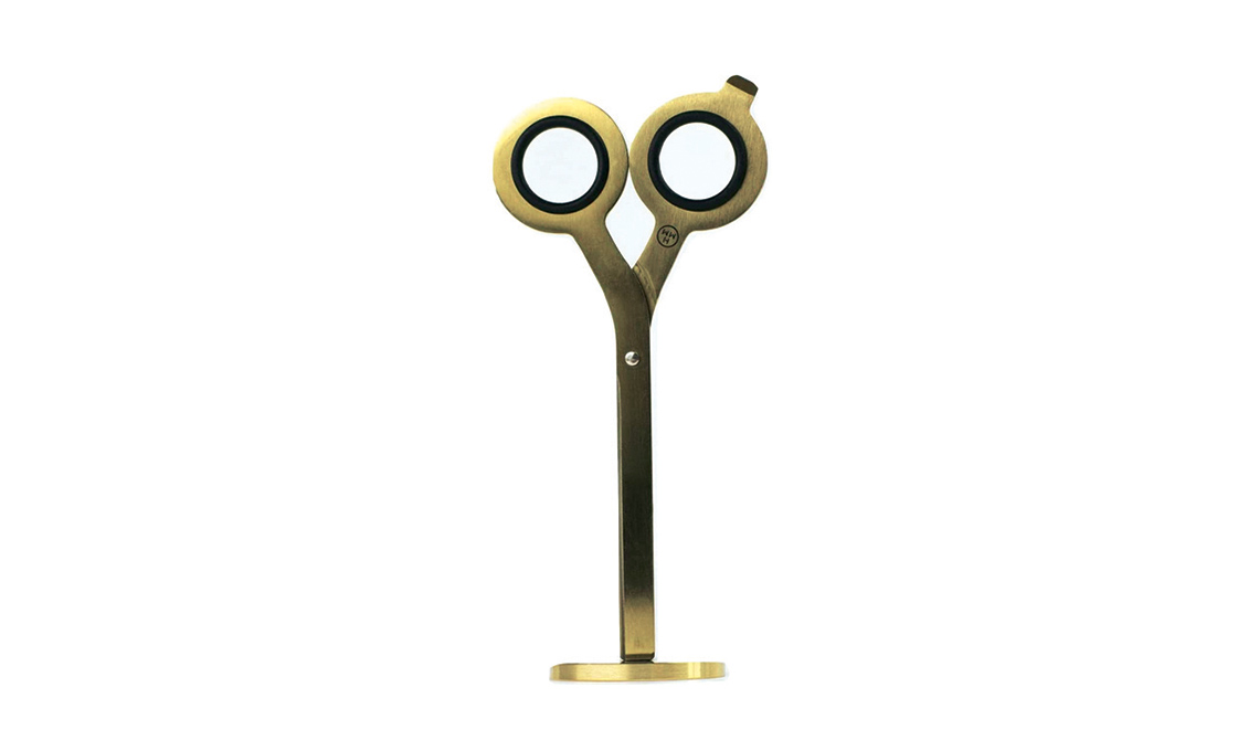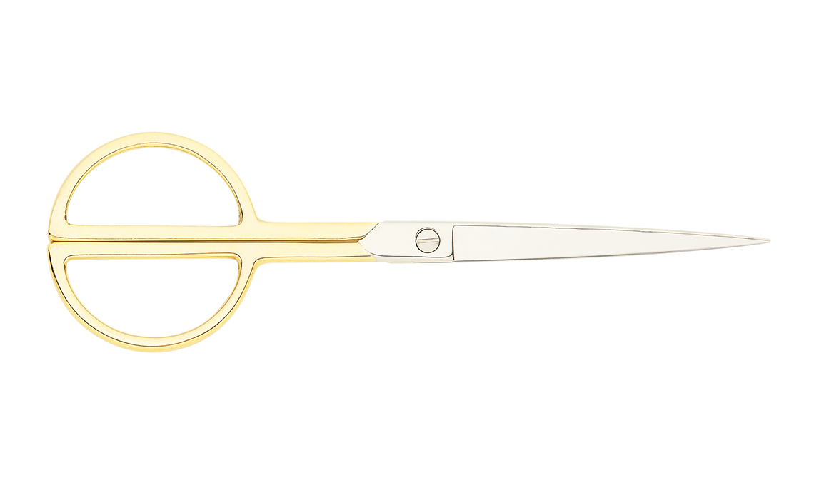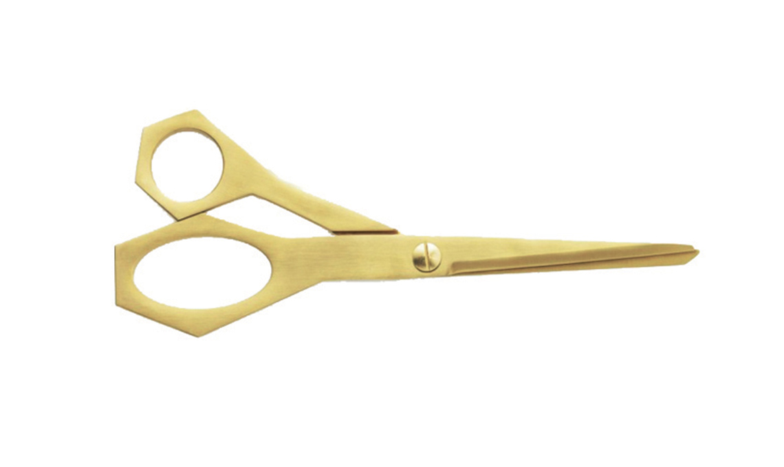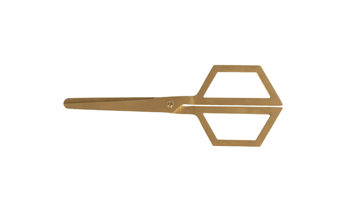 Per la carta, le forbici da scrivania della collezione Hex, in acciaio dorato [Doiy Design].
