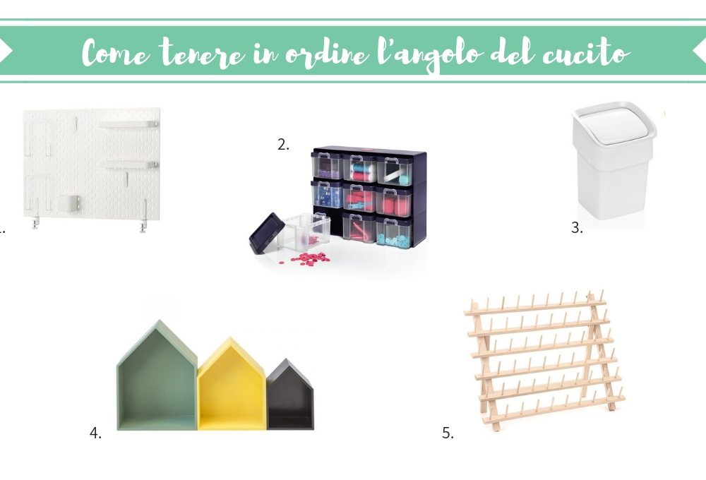 Porta accessori. Per evitare perdite di tempo, organizza i tuoi accessori di cucito in un unico contenitore, sarà più semplice trovarli all’occorrenza. Scegli un porta lavoro che si abbini alla tua casa, diventerà un accessorio da esporre!