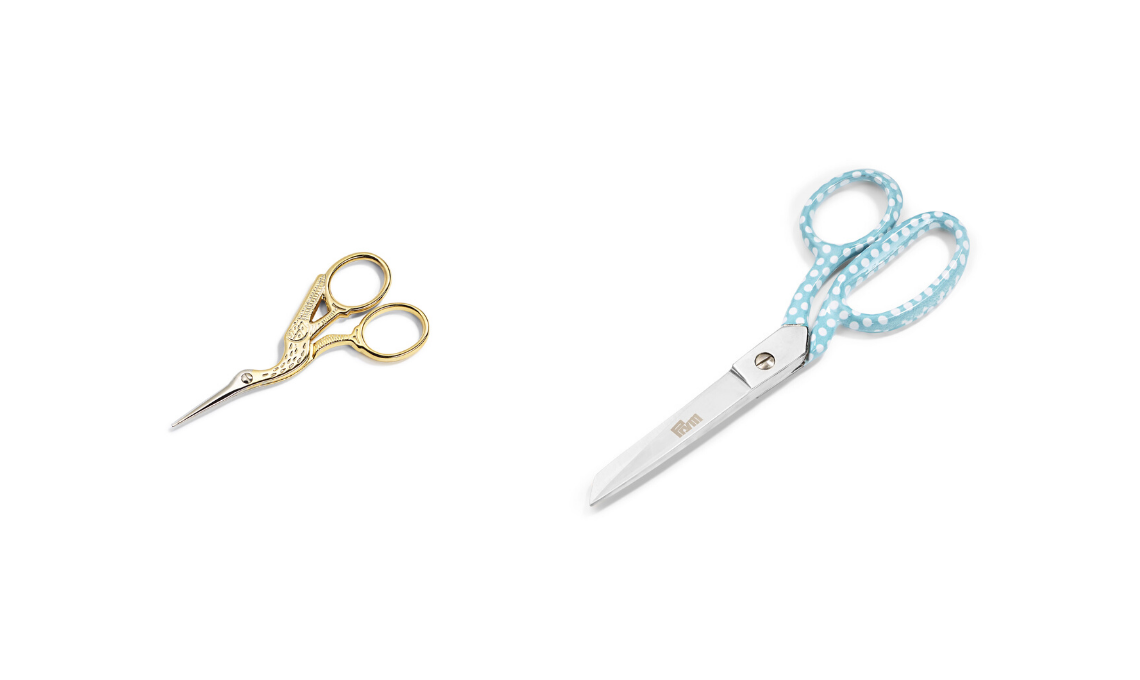 Forbici. Solo delle forbici ben affilate taglieranno i tessuti senza danneggiarli! Custodisci nel tuo set un paio di forbici e usale solo per le stoffe. Ti serviranno anche un paio di forbicine da ricamo, per tagliare i fili.