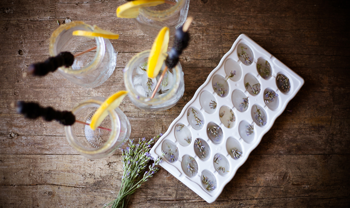 Bibite adatte a grandi e piccini come la limonata con ghiaccio alla lavanda, cristalli di sale o zucchero per decorare i bicchieri, ghiaccio decorato e piccole decorazioni. Scopri 4 idee per decorare la tavola!