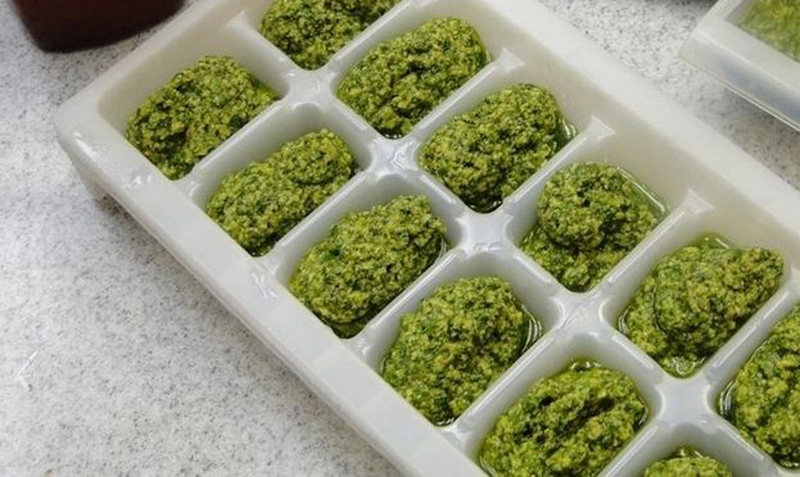 2. Mattoncini con mix di aromi: lava e asciuga il basilico e altre erbe aromatiche che hai a disposizione. Prendi le vaschette per fare il ghiaccio, in ogni scomparto metti le aromatiche sminuzzate con le mani e aggiungi dell’olio extravergine d’oliva e riponi nel freezer. Al bisogno, estrai il cubetto ‘aromatizzato’ che manterrà intatto l’aroma!