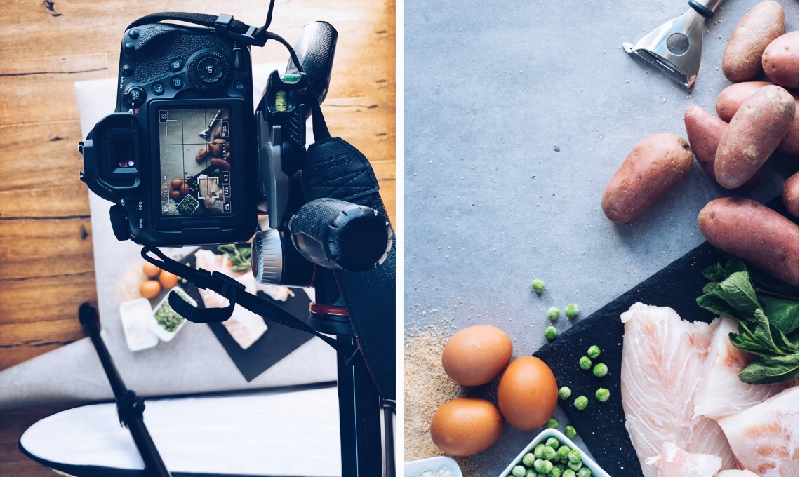 Siamo arrivati al momento della scelta degli sfondi e dei props, ovvero tutti gli oggetti di scena che userete nello scatto. Anche in questo caso la moodboard realizzata all’inizio aiuterà per la scelta dei colori e dei materiali dominanti. Iniziate a recuperare tutti gli oggetti che potrebbero servirvi per lo scatto pensando anche ad eventuali sostituti nel caso in cui uno non abbia la resa immaginata in fotografia.