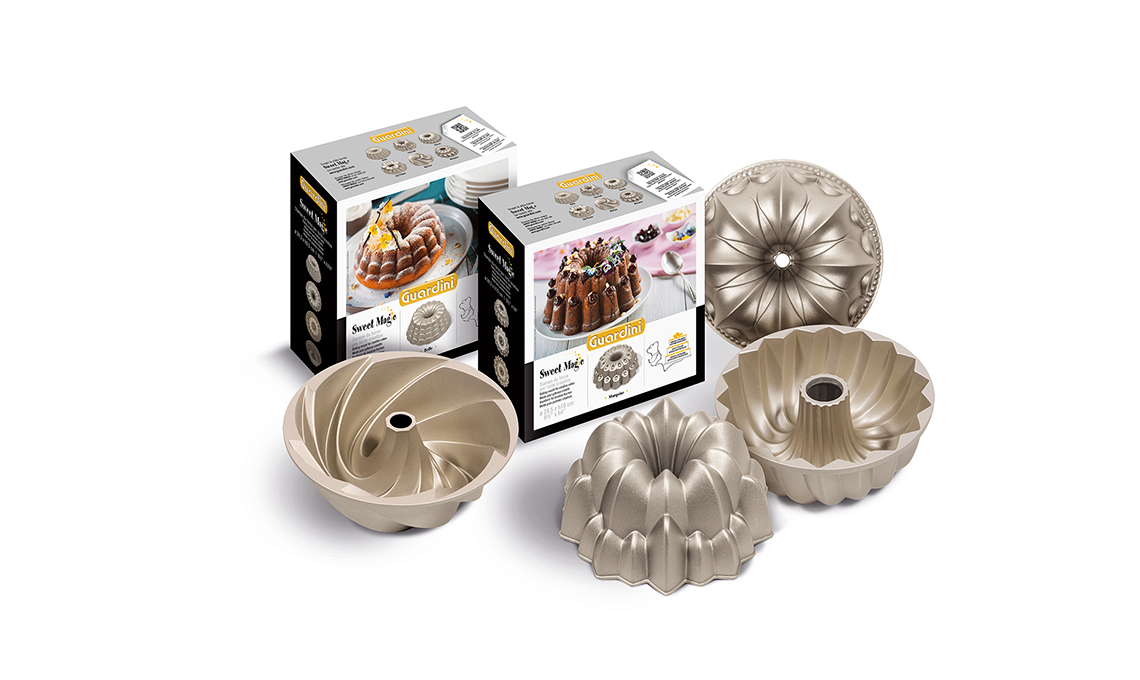 Stampi per torte creative in alluminio pressofuso con rivestimento antiaderente con le forme che tutti noi già amiamo e alcune novità. Quattro nuovi modelli inediti sul mercato, non solo italiano, permettono di realizzare facilmente dolci spettacolari: sfornare delizie non sarà più un problema. Grazie al pack elegante, è un'idea regalo per gli appassionati di pasticceria.
