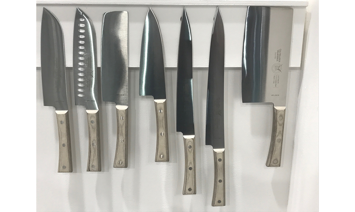 Questa serie di coltelli di alta qualità hanno lame in acciaio e manici in PaperStone®, un nuovo materiale composito costituito da fibre ottenute al 100% da resine e cartone riciclato post-consumo. Le resine non contengono fenoli derivati dal petrolio e non emettono formaldeide. La produzione di un pannello PaperStone® comporta quindi un notevole risparmio di energia, acqua e una riduzione di emissioni di gas nell'atmosfera e rifiuti solidi urbani. Questo materiale ha un'elevata resistenza alle trazioni, alla compressione, all'impatto e alla flessione, non assorbe acqua ed una elevata resistenza al calore.