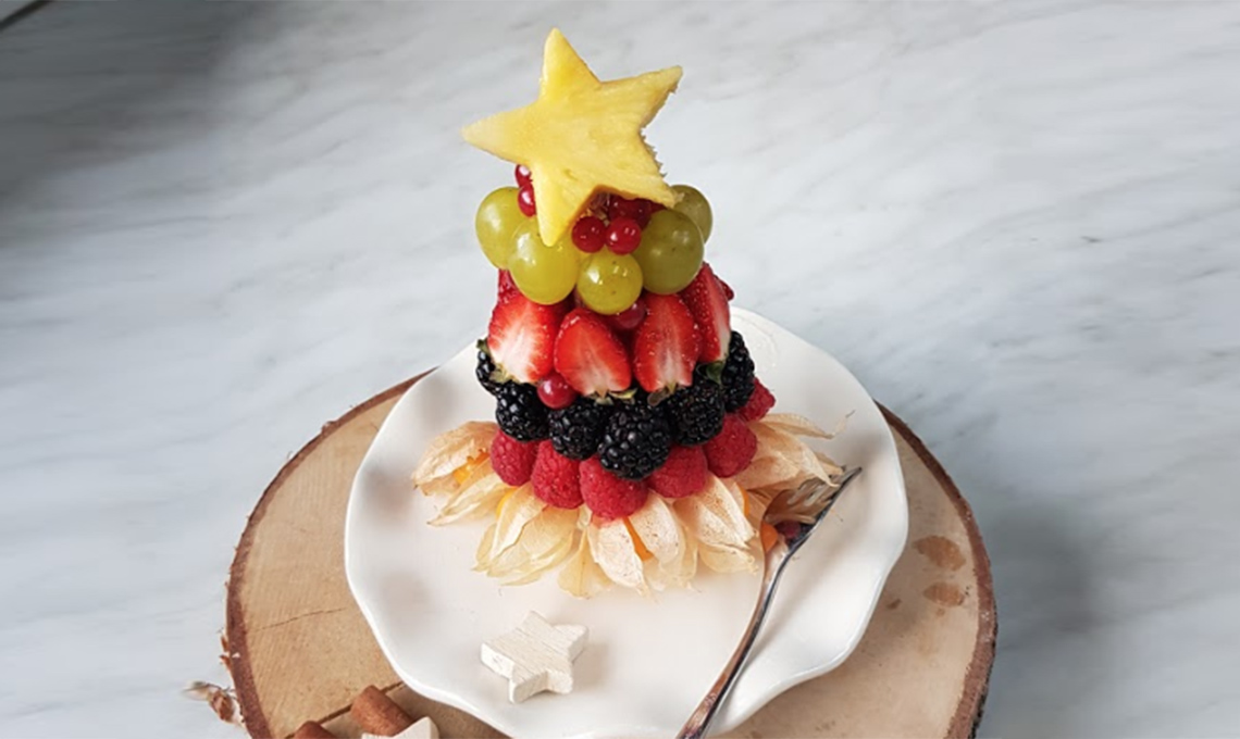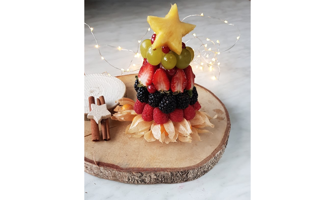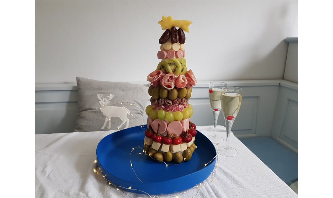 Per un alberello da aperitivo puoi utilizzare olive, rose di prosciutto o salmone, pomodorini farciti, acini d'uva, rondelle di mortadella o salame (puoi prepararle utilizzando i cutter dei biscotti), dadini di formaggio, fettine di kiwi completando l’albero con una stella di ananas o mango alla sommità.