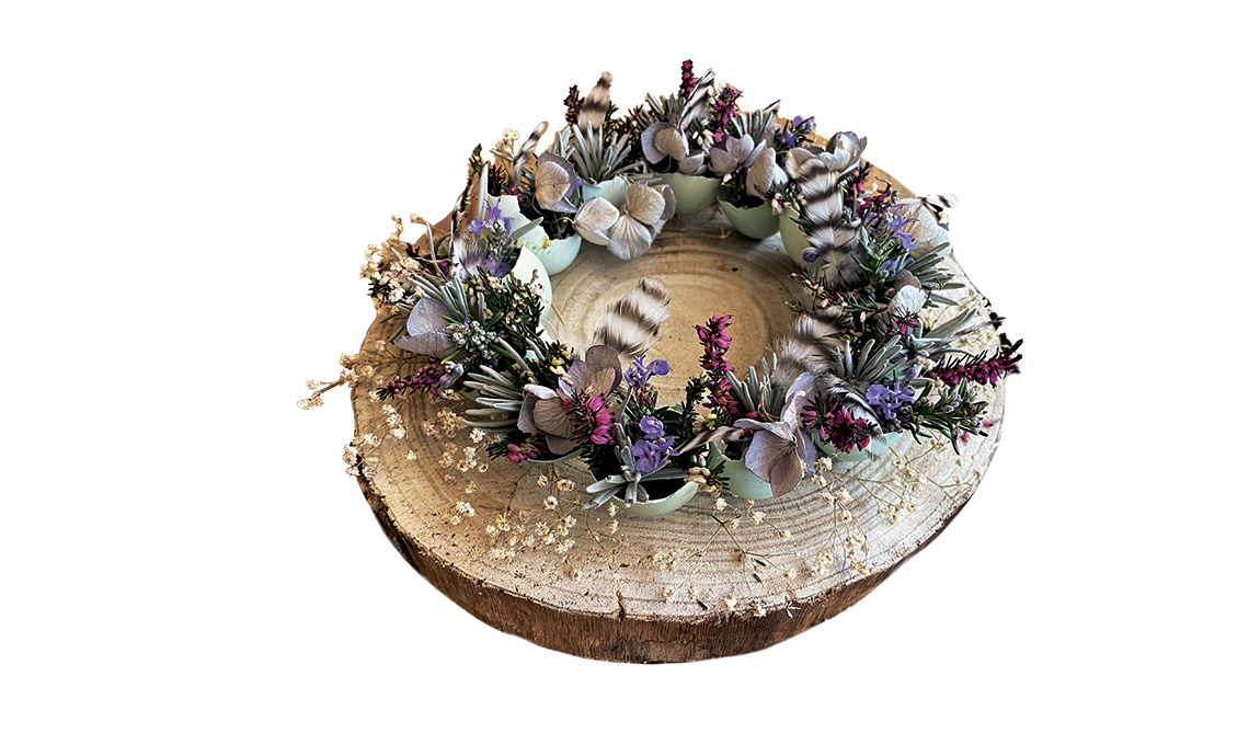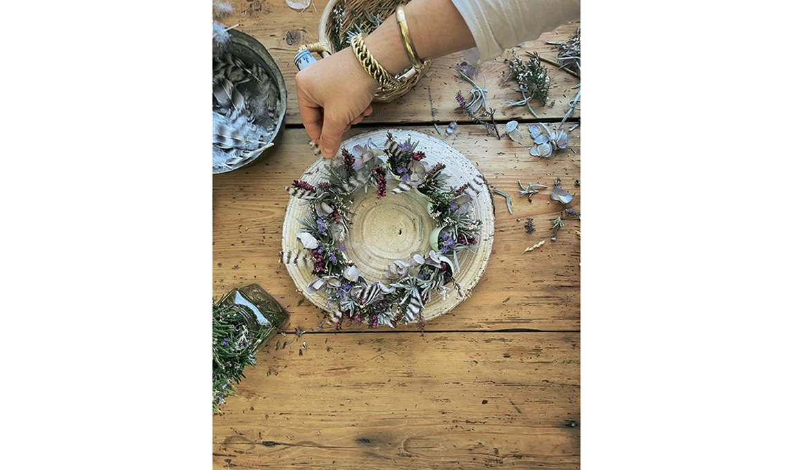 - elementi floreali freschi: rosmarino, foglie di lavanda, erica fucsia, erica bianca
