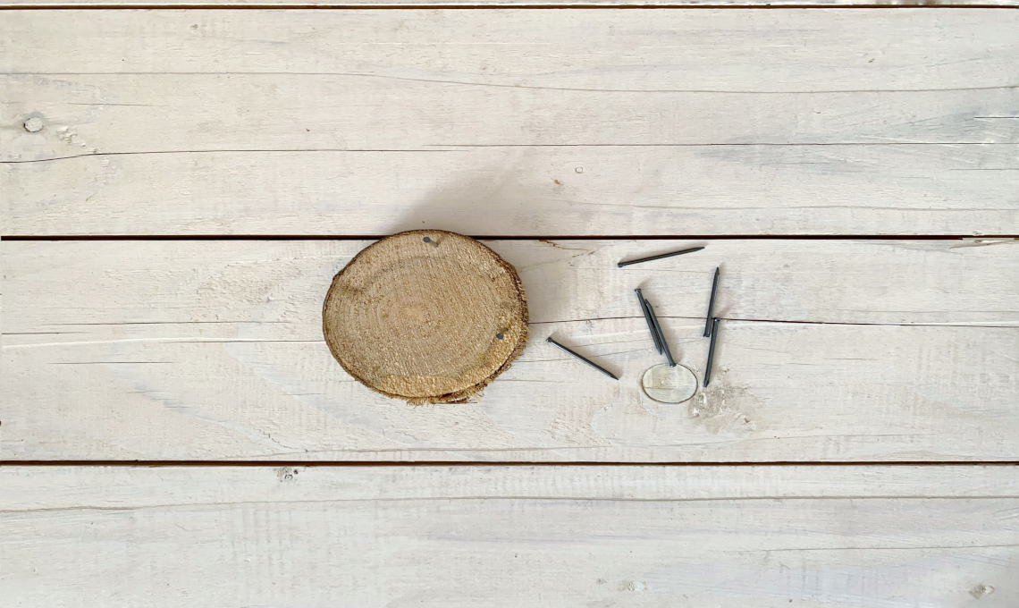 Dischi di legno grezzo di diametro circa 6,5-7 cm che magari ti sono avanzati dalle decorazioni di Natale (altrimenti, acquistabili online o nei negozi di decorazione)