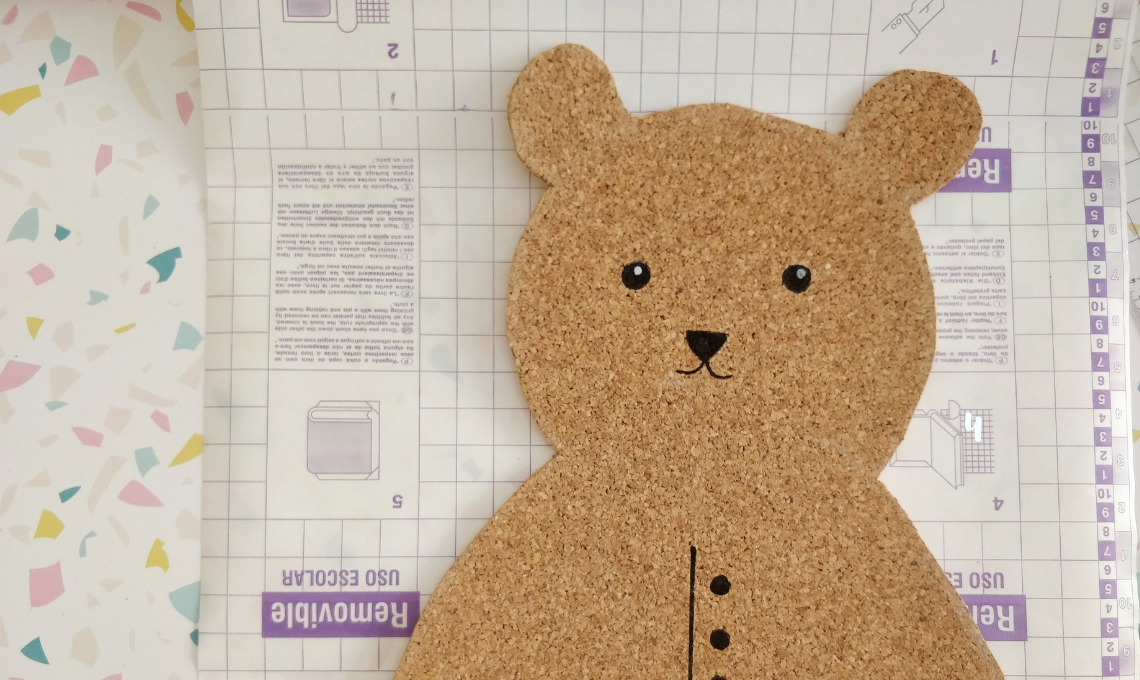 - Con pennarello indelebile completate l’orsetto con i dettagli: occhi naso bocca e vestitino! È necessario ricoprire tutto con una pellicola adesiva trasparente che proteggerà la tovaglietta. Basterà una passata di spugna e tutte le macchie di latte o marmellata spariranno!