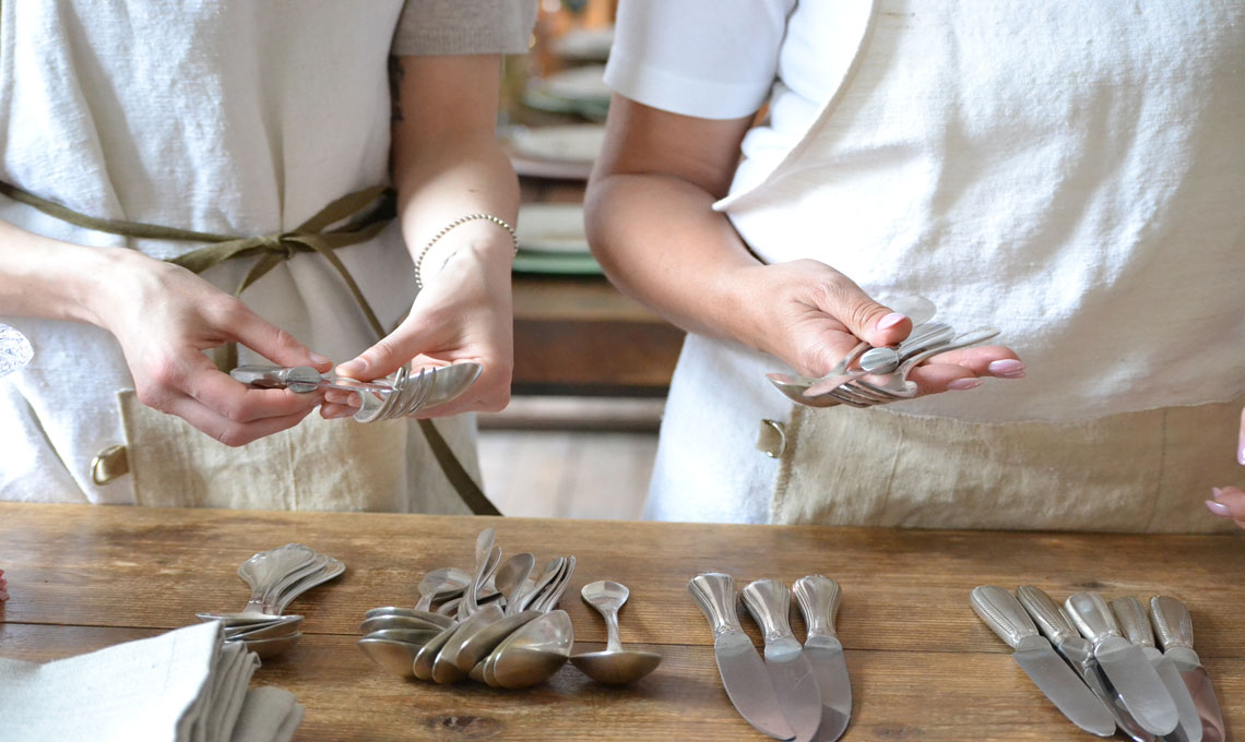 2. Inserisci qualche dettaglio vintage. Per questa tavola, ad esempio, sono state utilizzate posate di un servizio antico. Ricorda che non devono essere per forza tutte uguali.
