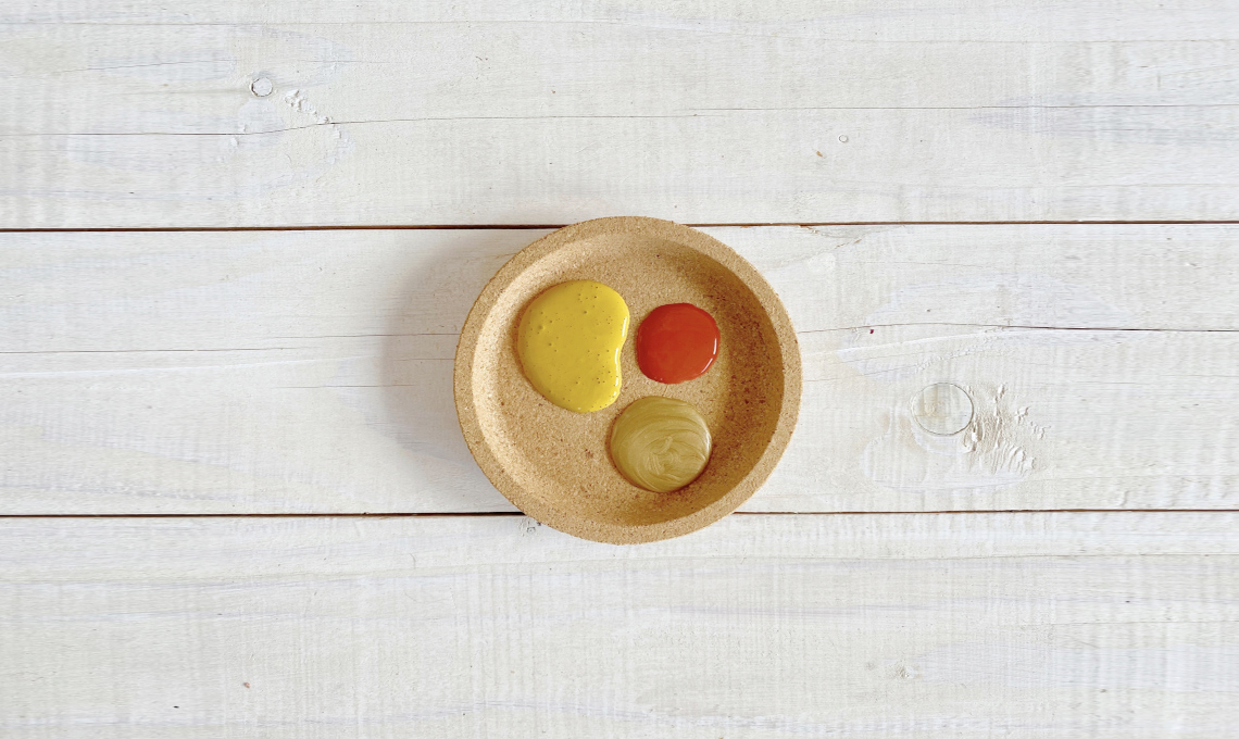 2. Versa un po’ di ciascun colore sulla superficie del sottobicchiere, poi fai roteare leggermente in modo da far toccare tra loro i vari colori.