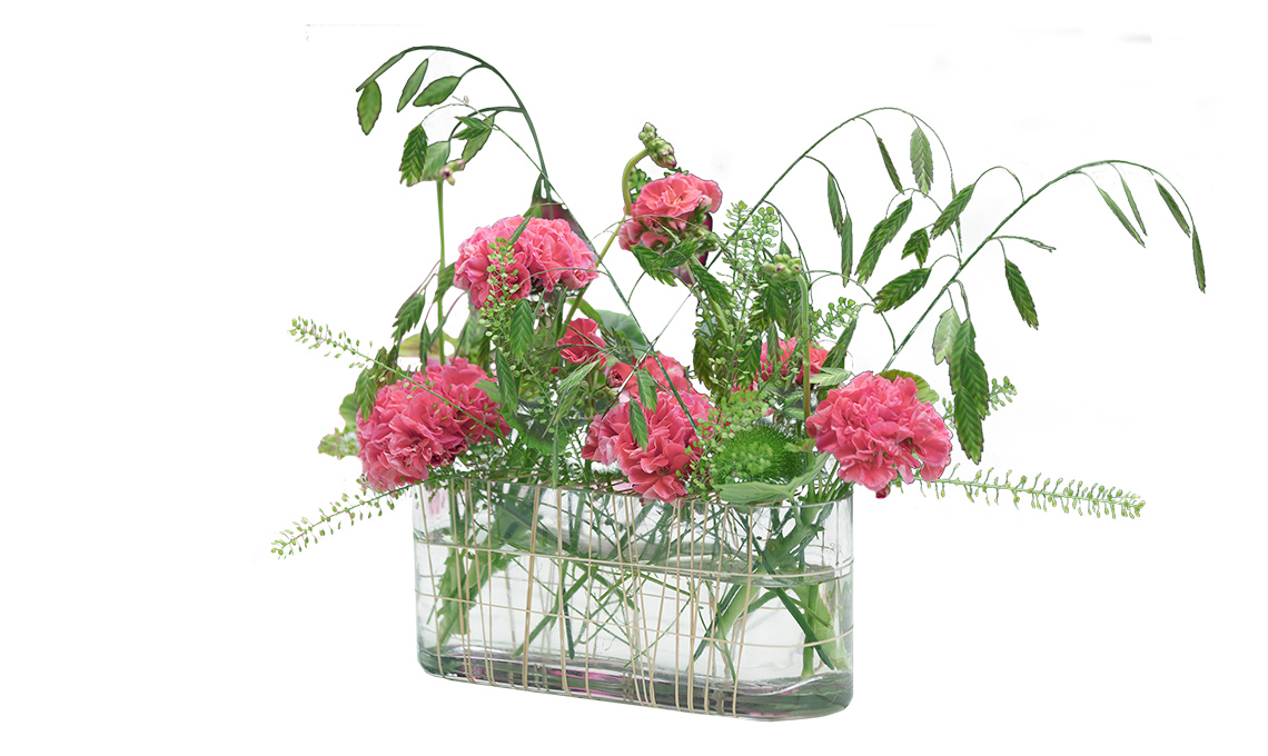 Hai una ciotola troppo grande per i tuoi fiori? Prendi un gomitolo di spago e avvolgi il contenitore formando una sorta di ‘ragnatela’ molto fitta. Fissa il capo del filo con lo scotch in un punto non visibile. Aggiungi l’acqua e inizia a inserire i rami più lunghi per finire con quelli più corti. Per farli durare a lungo, metti qualche goccia di candeggina nell’acqua.