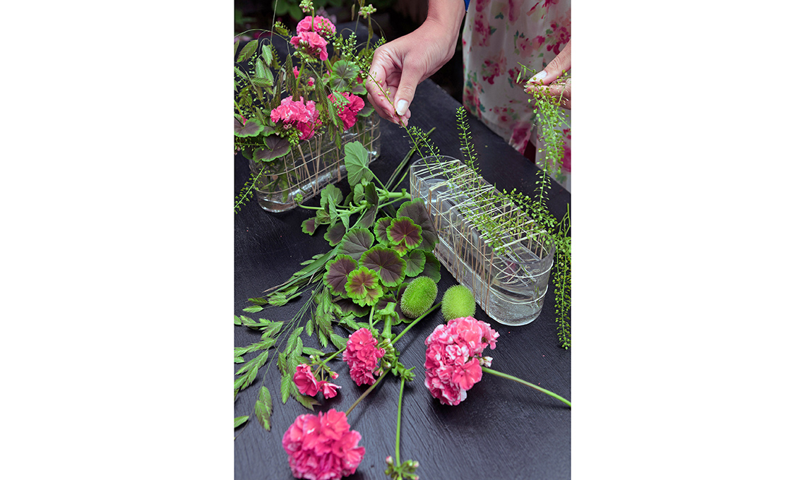 Recupera i vasetti delle conserve, le bottiglie dei succhi di frutta e, utilizzando lo spago, avvolgi l’imboccatura. Blocca tutto con un nodo ben stretto e crea una ‘maniglia’ lunga circa 20 cm, che servirà per appendere dove preferisci le tue creazioni. Taglia i fiori dei gerani e scatena tutta la tua creatività! Ringhiere e scalette, per esempio, saranno dei perfetti supporti.